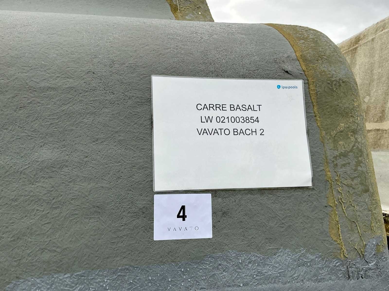 Imperfectie: kleurvlekken , foto ter indicatie indien geplaatst (niet hetzelfde zwembad) Kleur: Donkergrijs Lengte: 855cm Breedte: 400cm Hoogte: 150cm Materiaal: Vinylester Epoxy