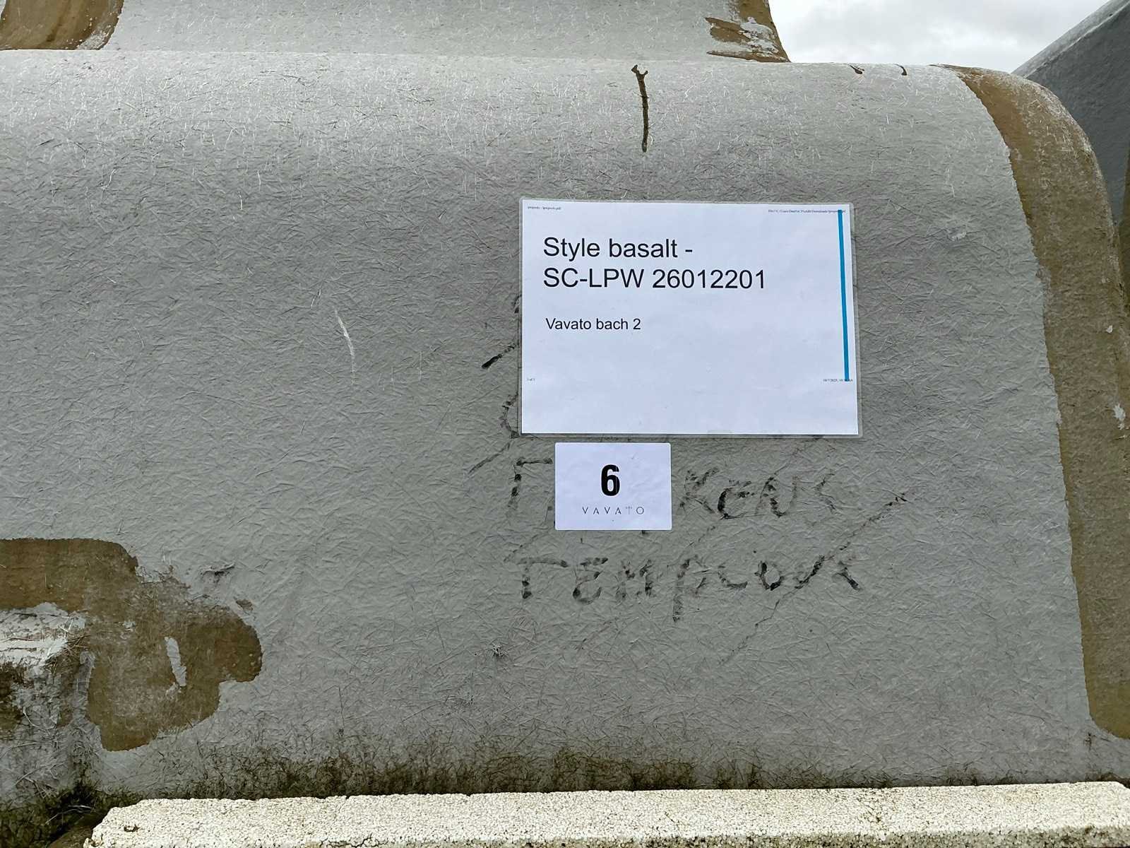 Imperfectie: kleurvlekken , foto ter indicatie indien geplaatst (niet hetzelfde zwembad) Kleur: Donkergrijs Lengte: 1015cm Breedte: 400cm Hoogte: 150cm Materiaal: Vinylester Epoxy