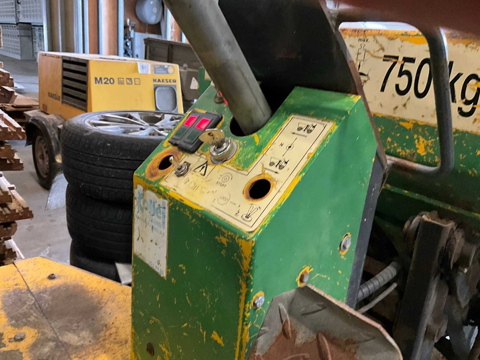 Voorzien van verstelbare kiepcontainer/kantelbak met max. capaciteit 750 kg. Merk: John Deere Type: LS750 Bouwjaar: 2000