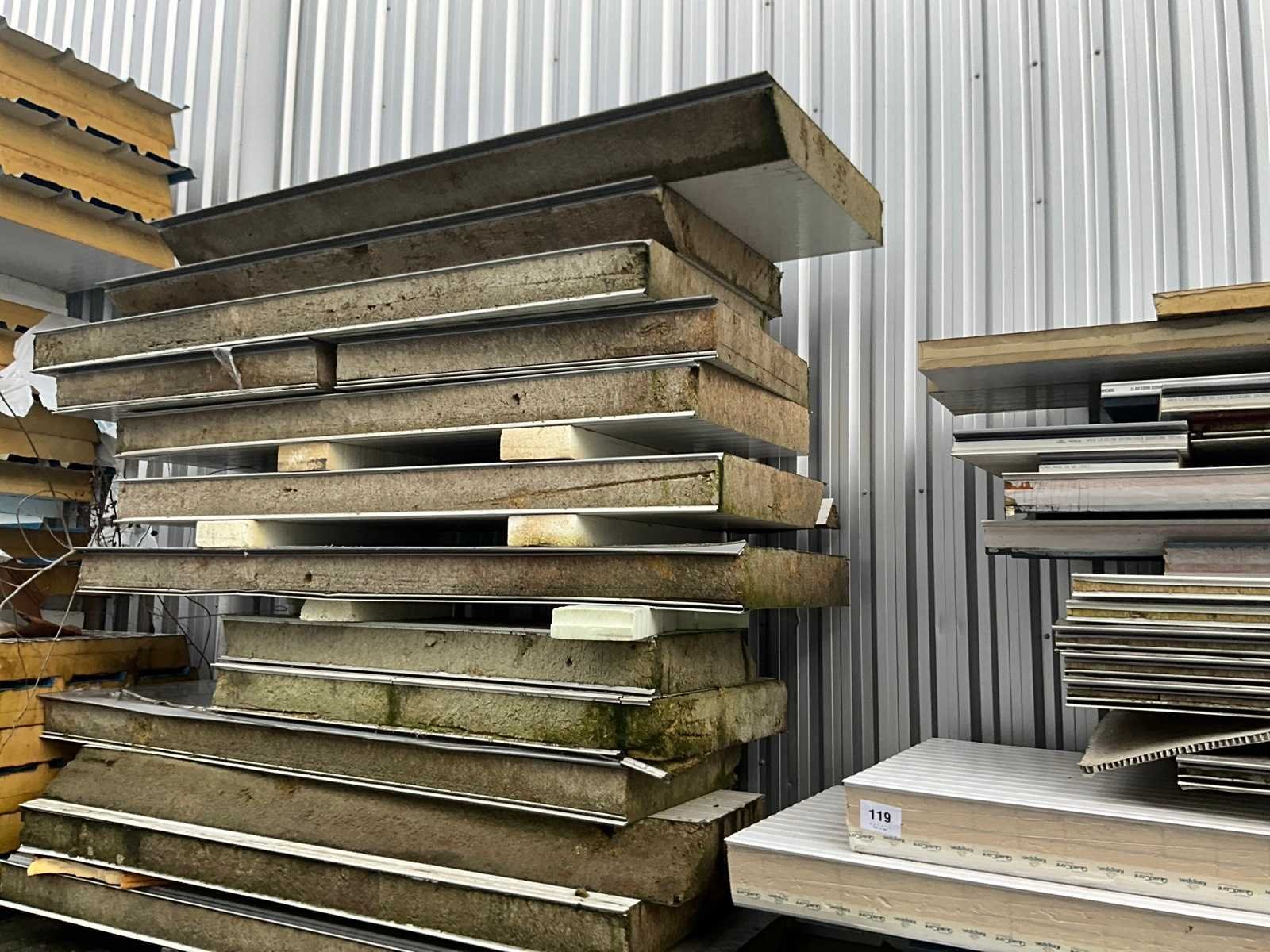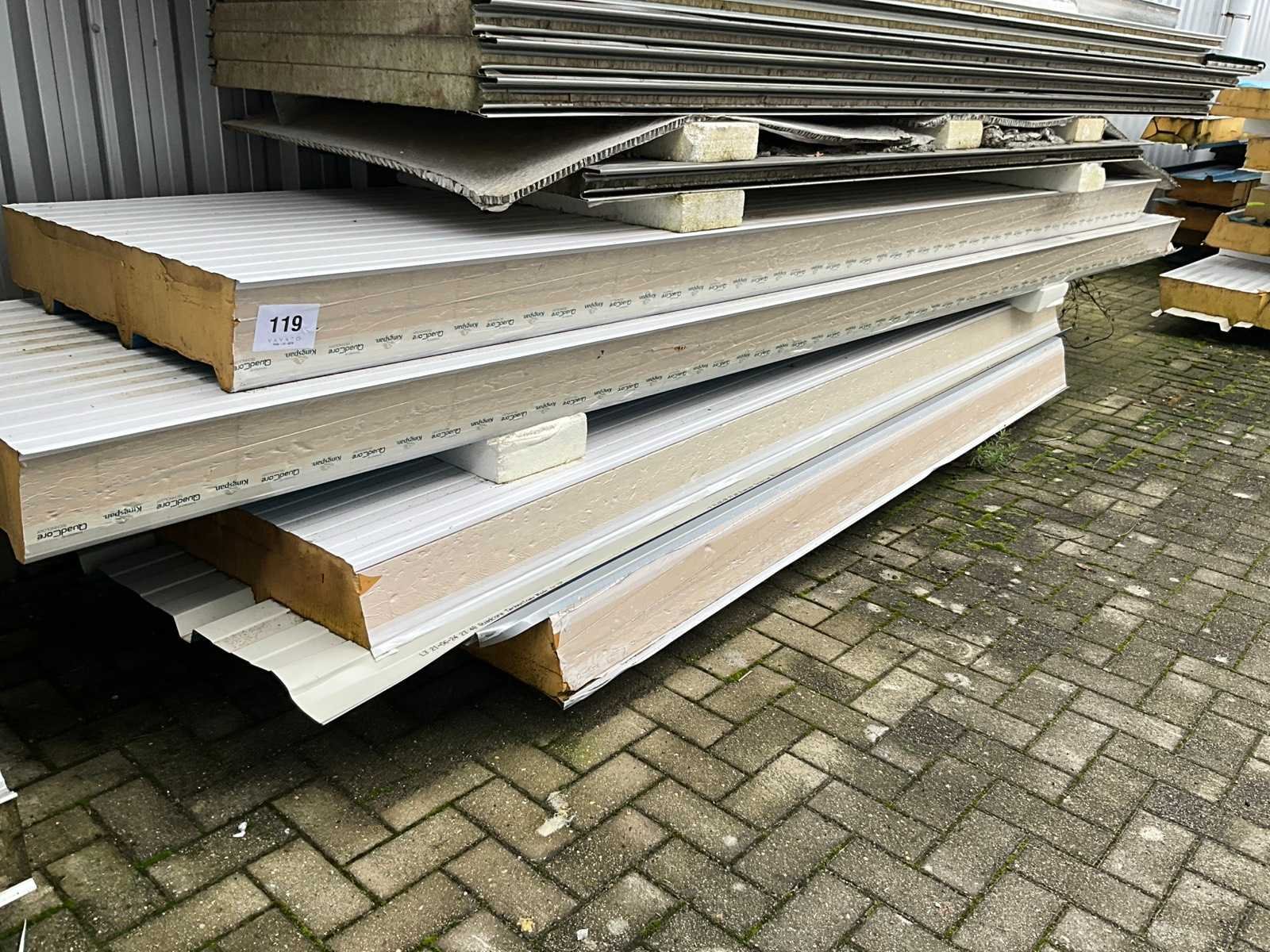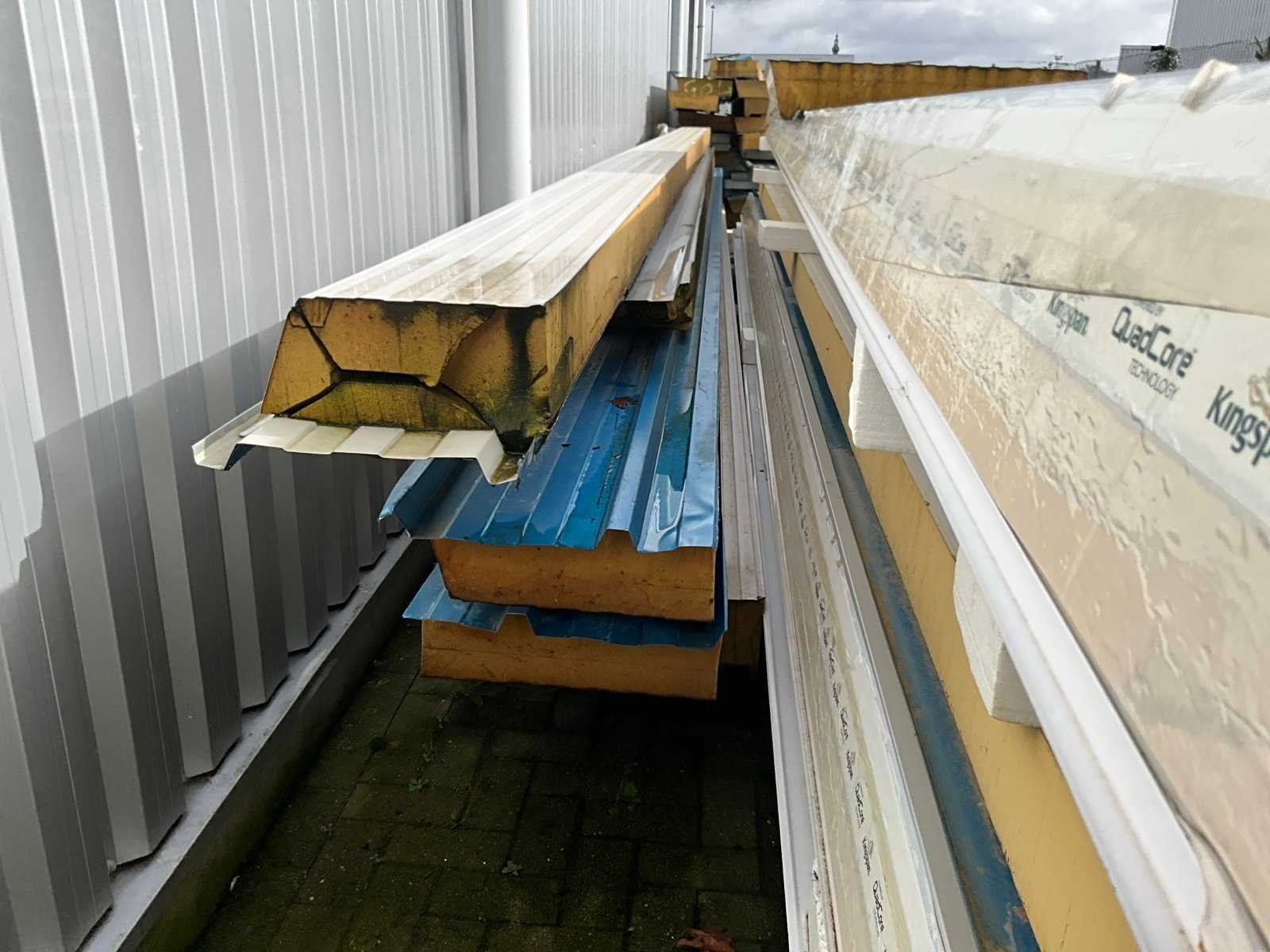 Grote partij diverse panelen in verschillende uitvoeringen, diktes en lengtes en waaronder van circa 150 tot 1000 cm lang, van 40 tot 105 cm breed en van 6 tot 15 cm dik. Waaronder ook enige isolatie Kingspan. Los liggend op buitenterrein aan zijkant magazijn, UITGEZONDERD de loten 117 en 118 (Kingspan) Merk: Kingspan Product type: Quad-Core