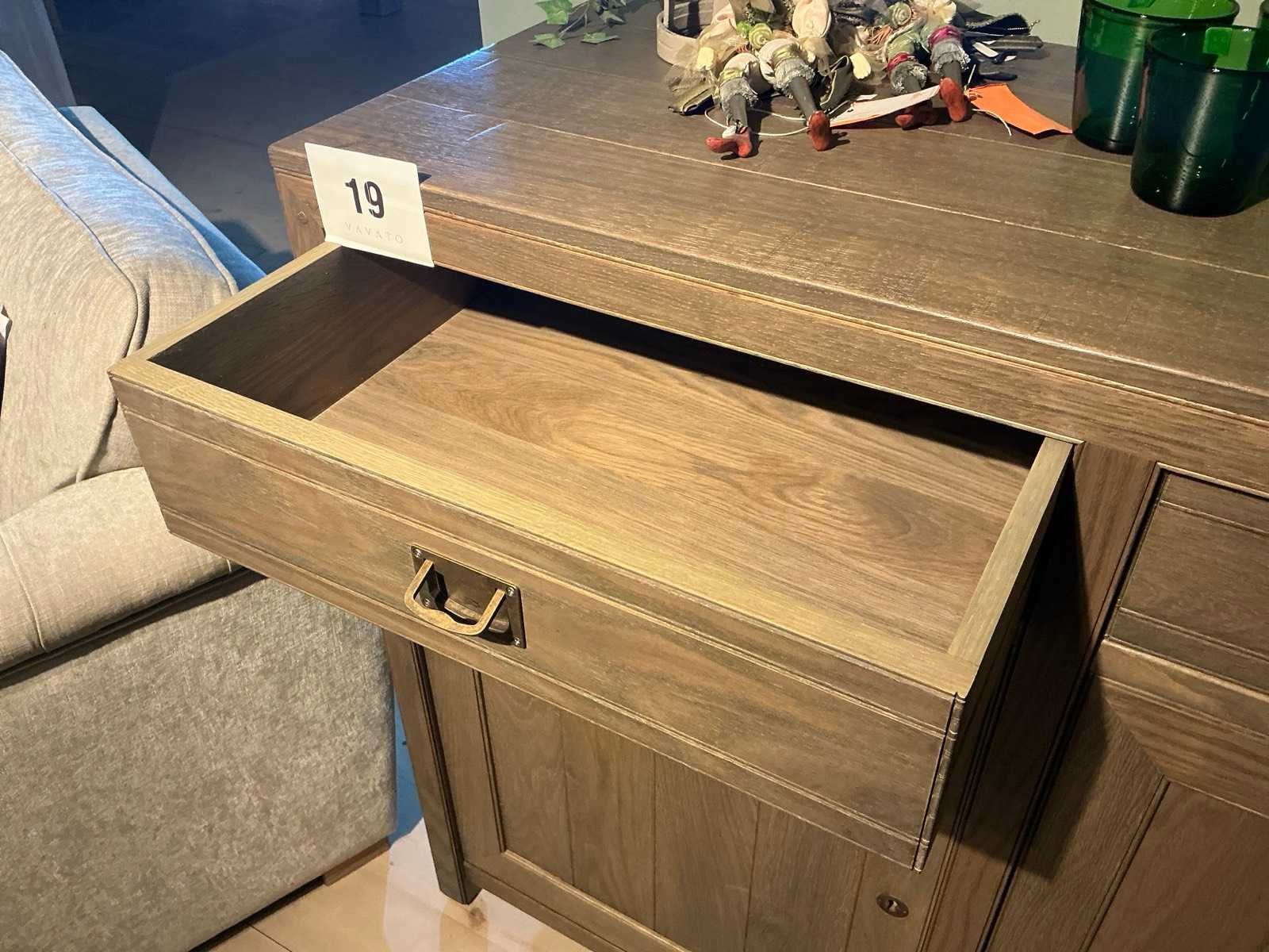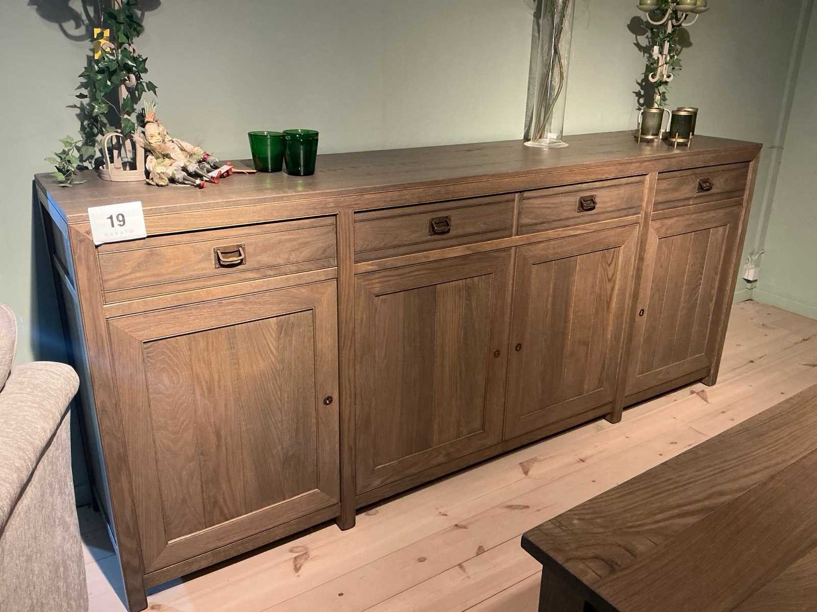 Voorzien van 4 lades en 4 deuren Lengte: 240cm Breedte: 52cm Hoogte: 101cm Materiaal: Massief hout
