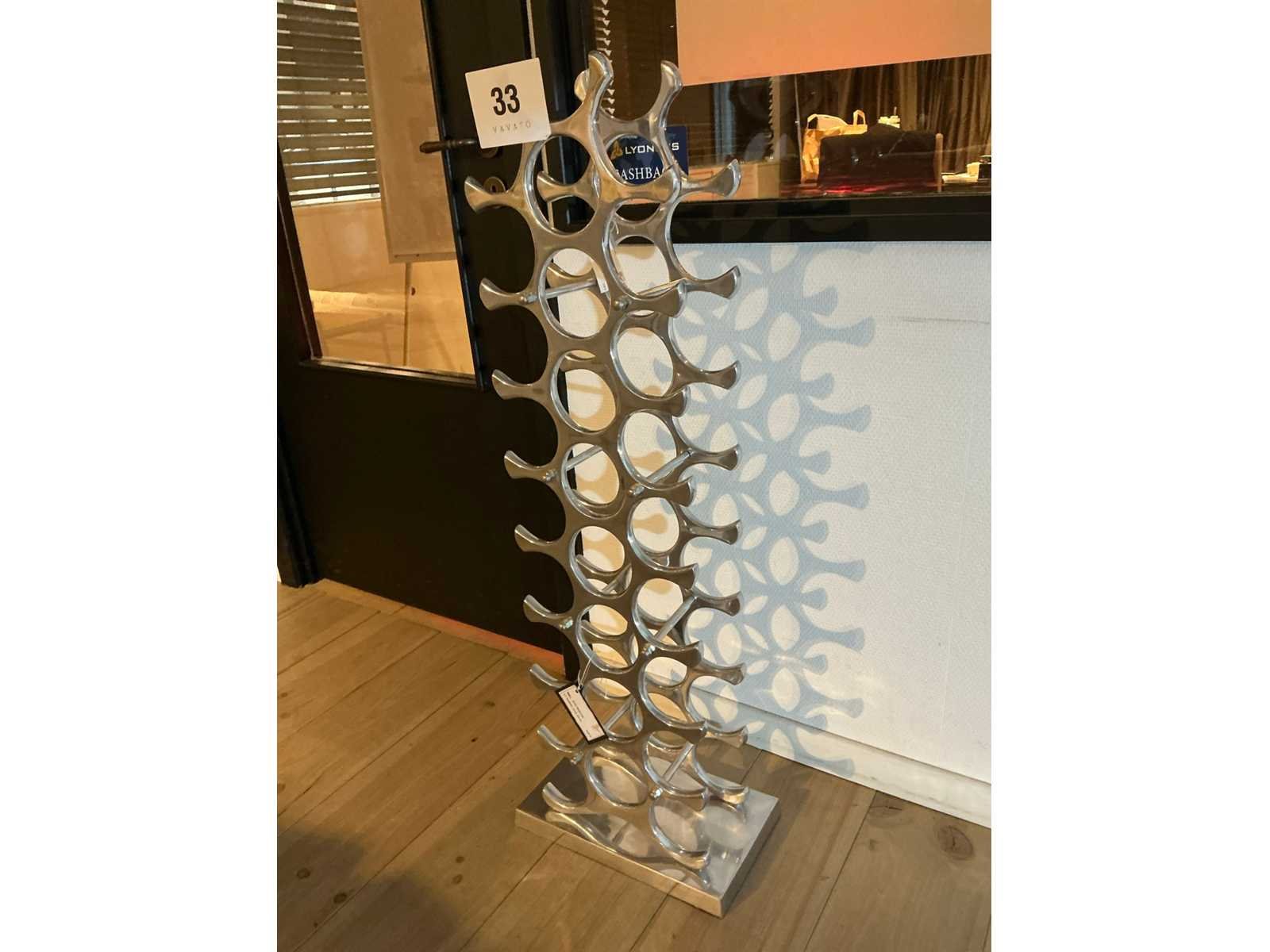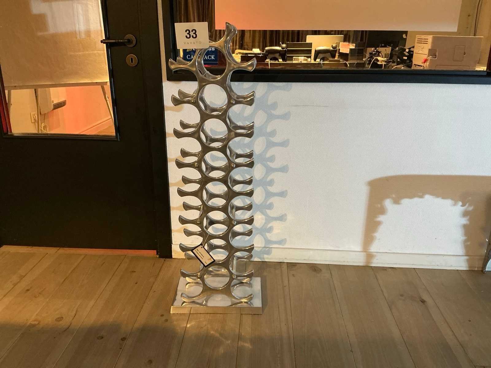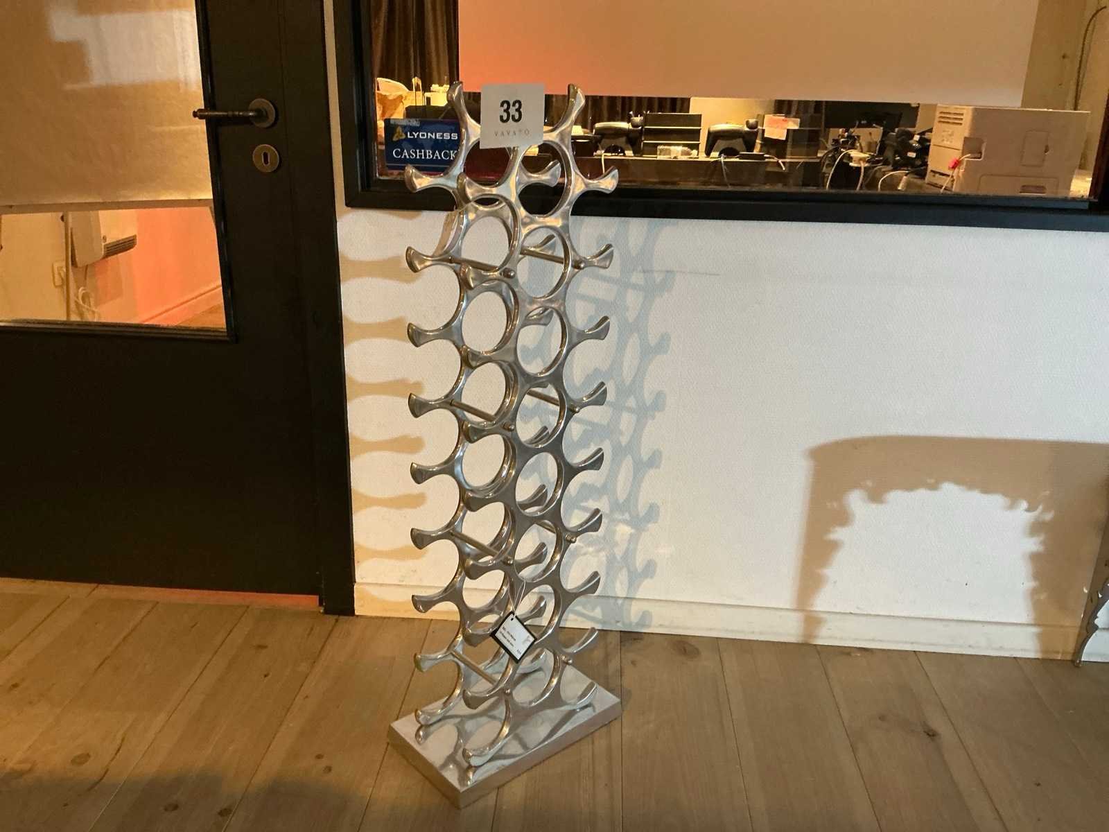 Voorzien voor 27 flessen. Materiaal: Aluminium Lengte: 35cm Breedte: 21cm Hoogte: 105cm