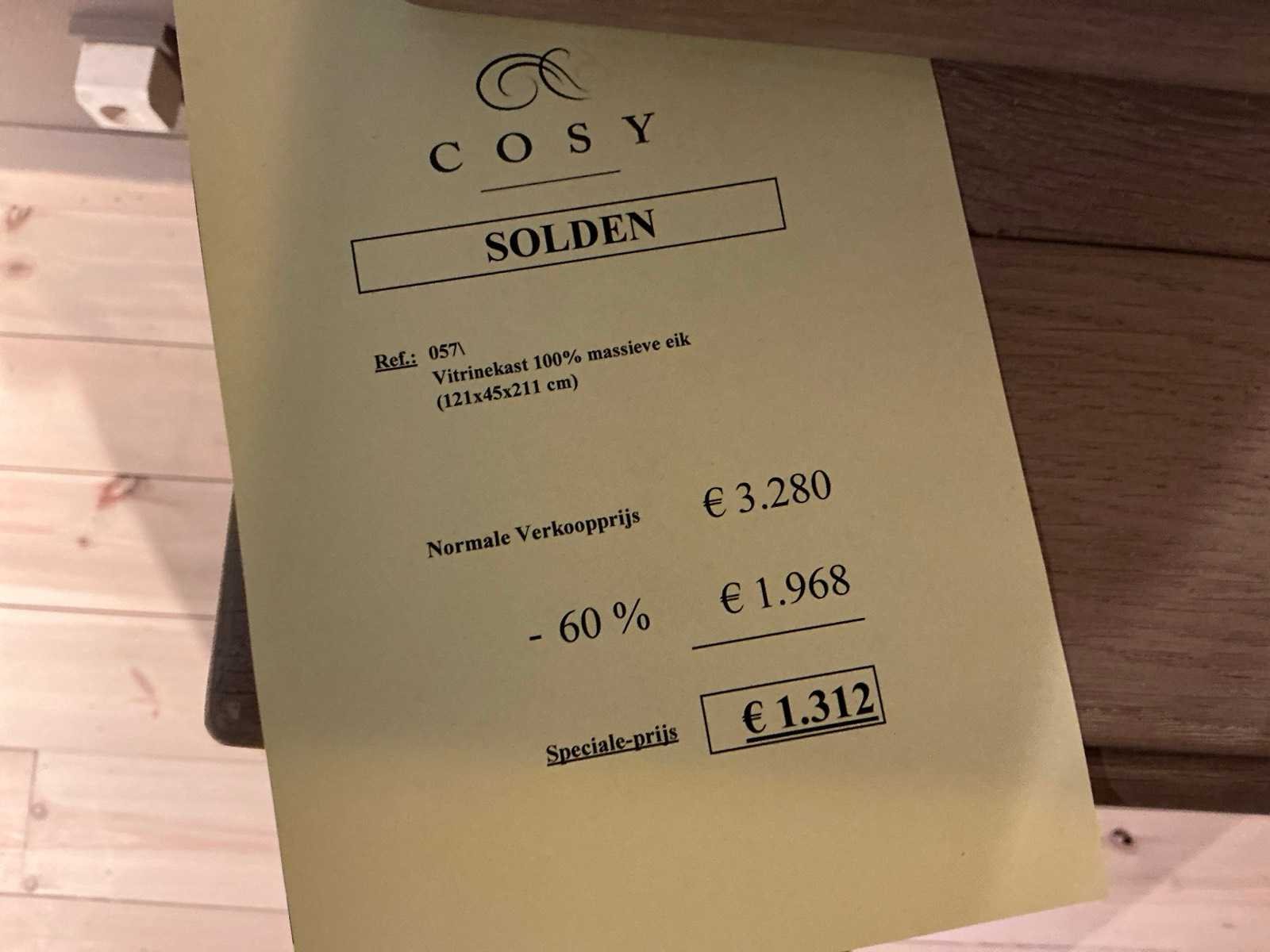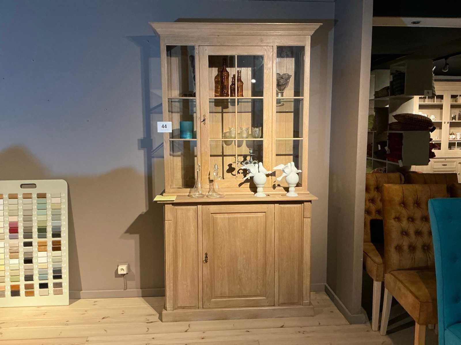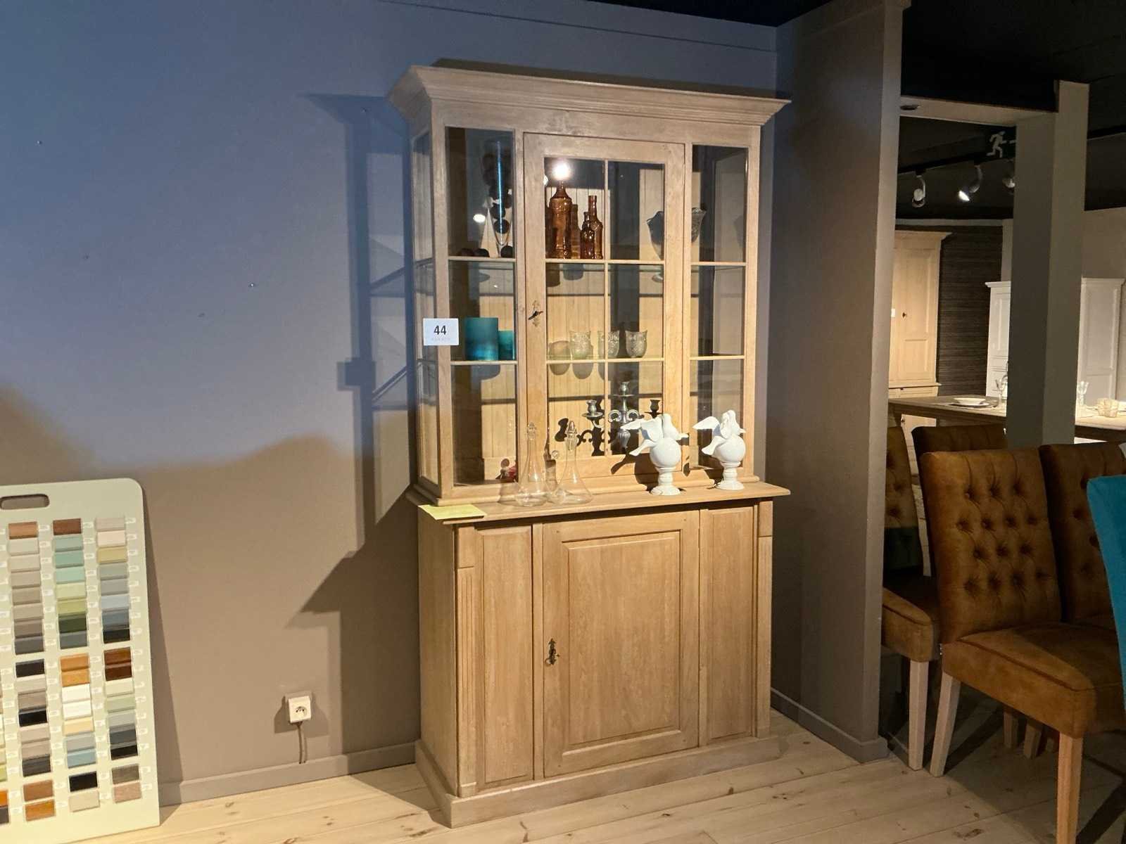 Voorzien van 2 deuren waaronder 1x glas Lengte: 121cm Breedte: 45cm Hoogte: 211cm Materiaal: Massieve eik