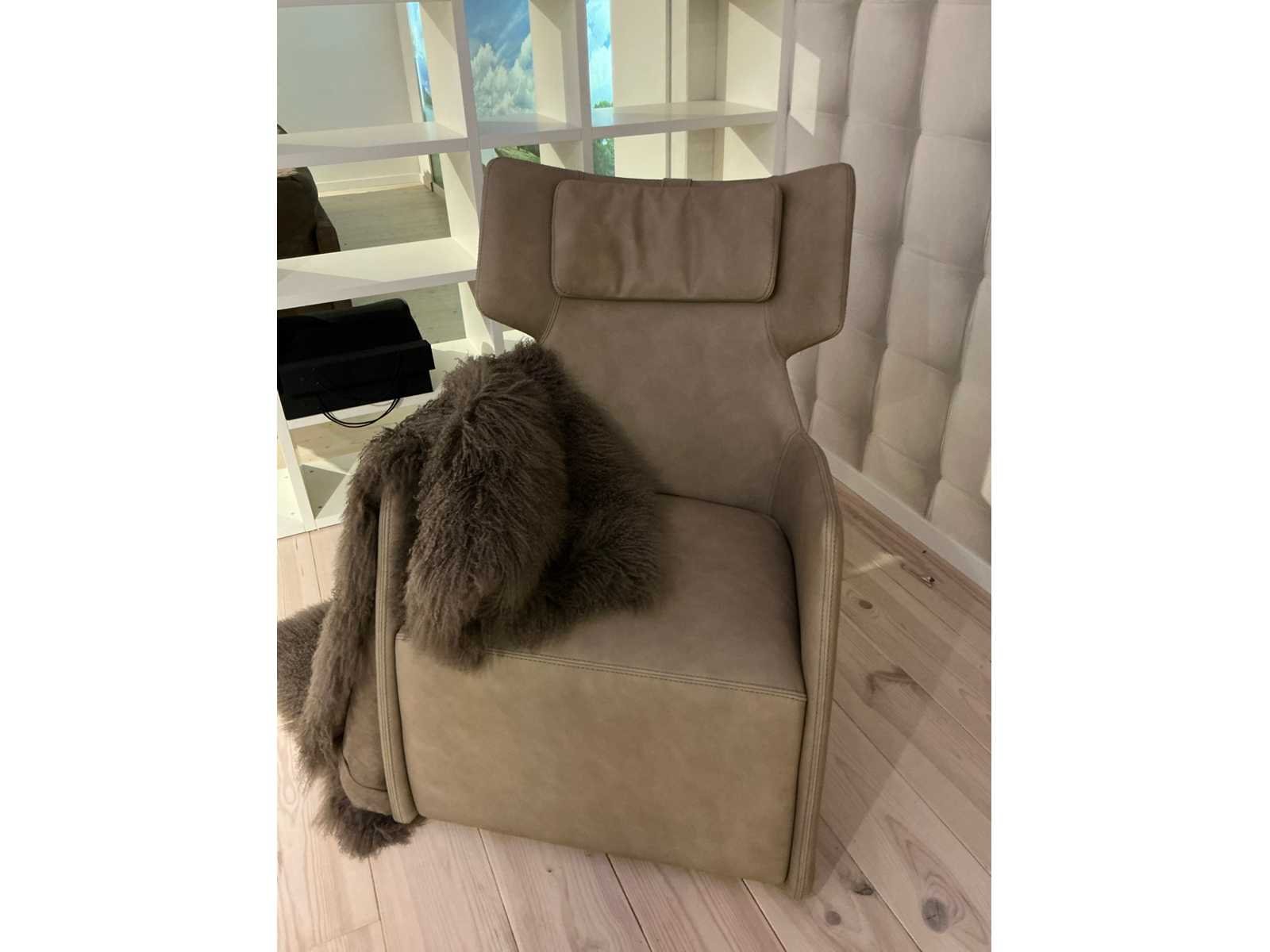 Chrome onderstel, compleet met plaid Cosy 190x120cm Merk: Gamma Model: Club Lengte: 71cm Breedte: 66cm Hoogte: 100cm Materiaal: Vintage leder Cat. H