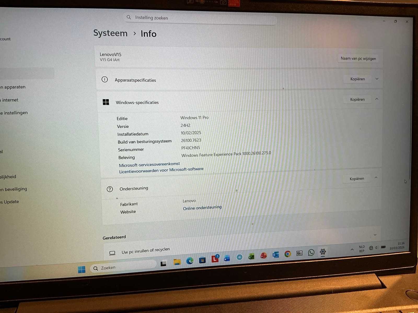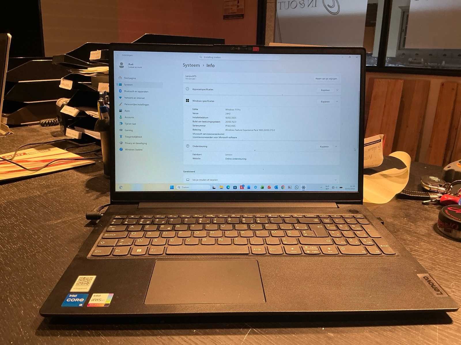 Windows 11 pro Merk: Lenovo Type: V15 Processor type: Intelcore i5-12500h RAM Geheugen: 16GB Type videokaart: 128mg iris de graphix Met adapter: true