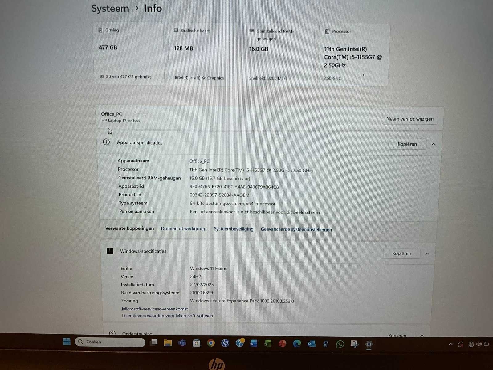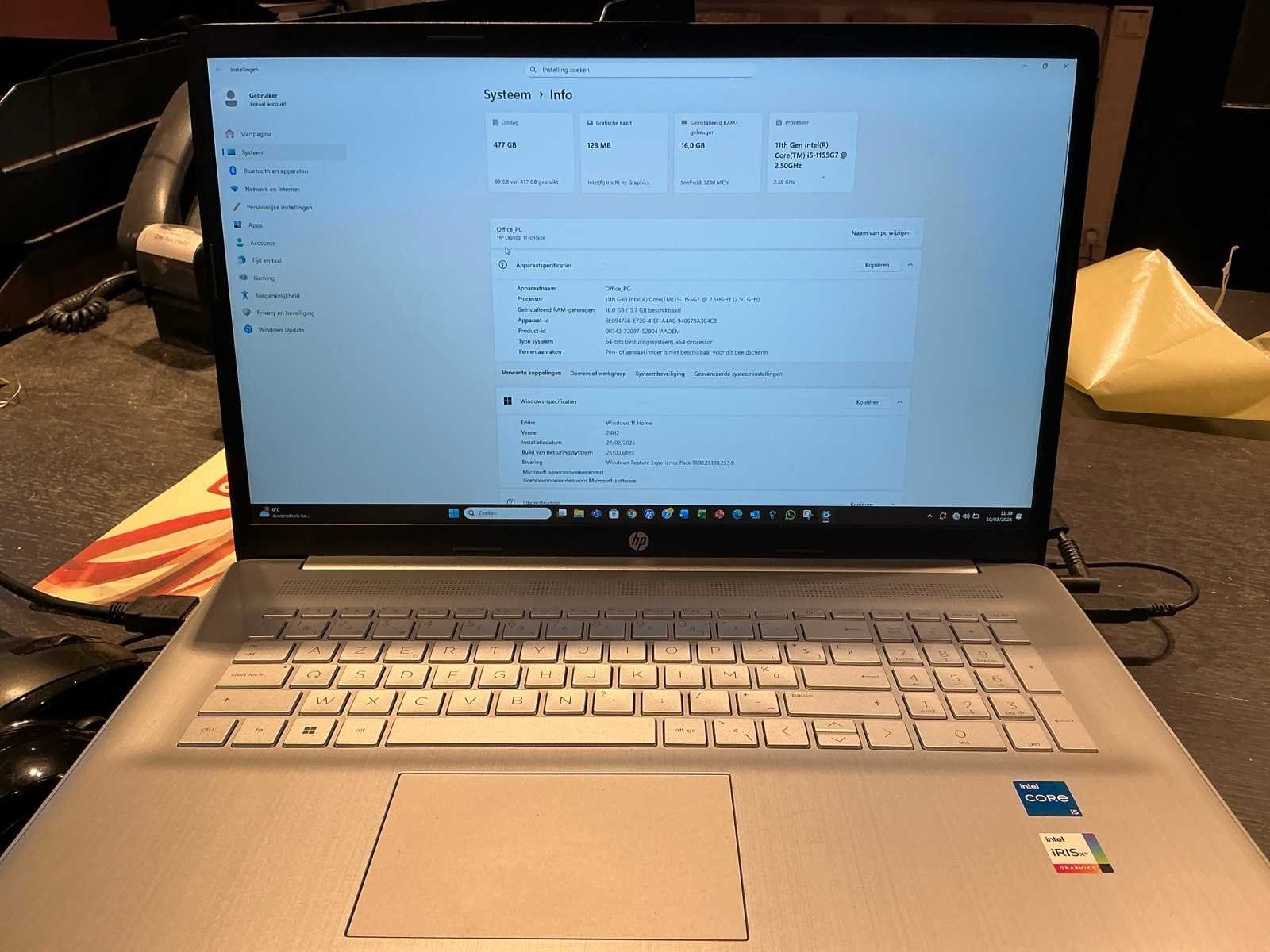 Windows 11home Merk: HP Type: 17-cn1 Processor type: Intel core i5-1155g7 RAM Geheugen: 16GB Type videokaart: 128mb xe graphics Met adapter: true
