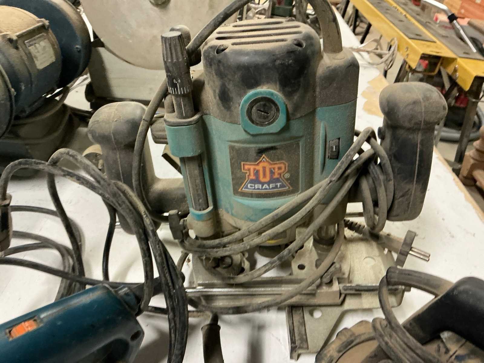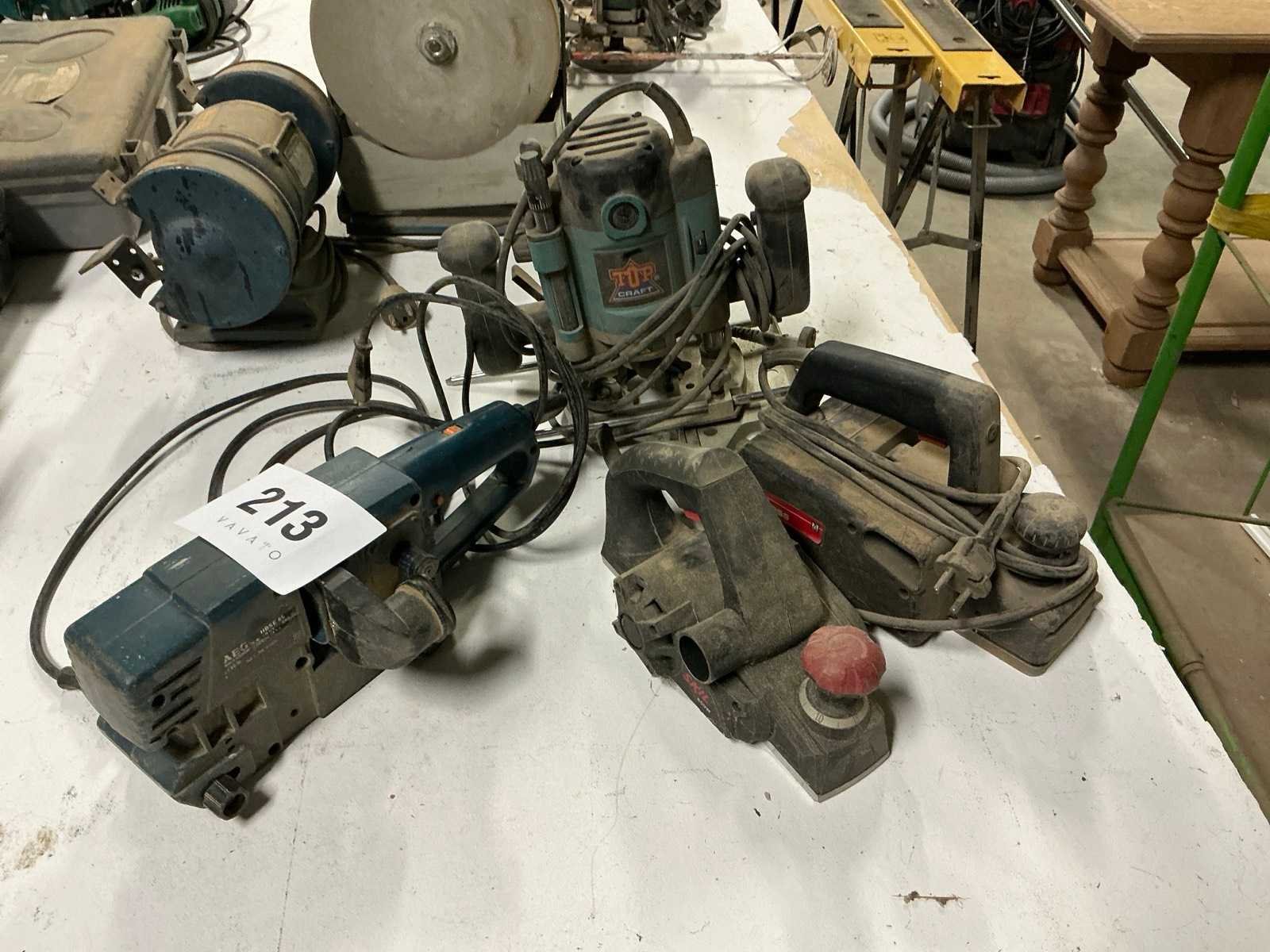 Waaronder 2 diverse handschaven waaronder kress en skill, bovenfrees topcraft tbc-1200, bandschuurmachine aeg hbse65
