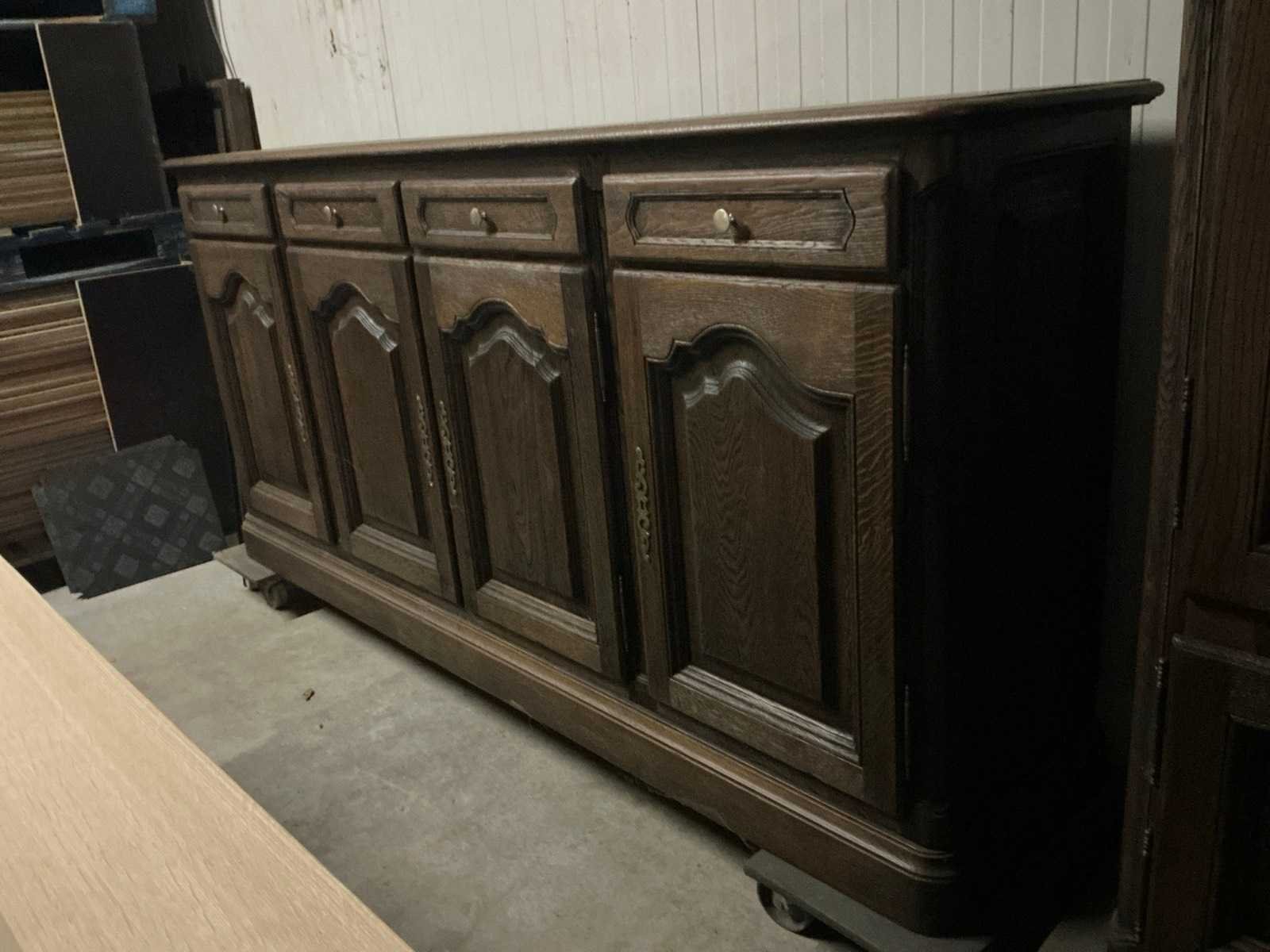Bestaande uit dressoir afmeting circa 228 x 50 x 109 cm en barkast met afmeting circa 110 x 50 x 114 cm