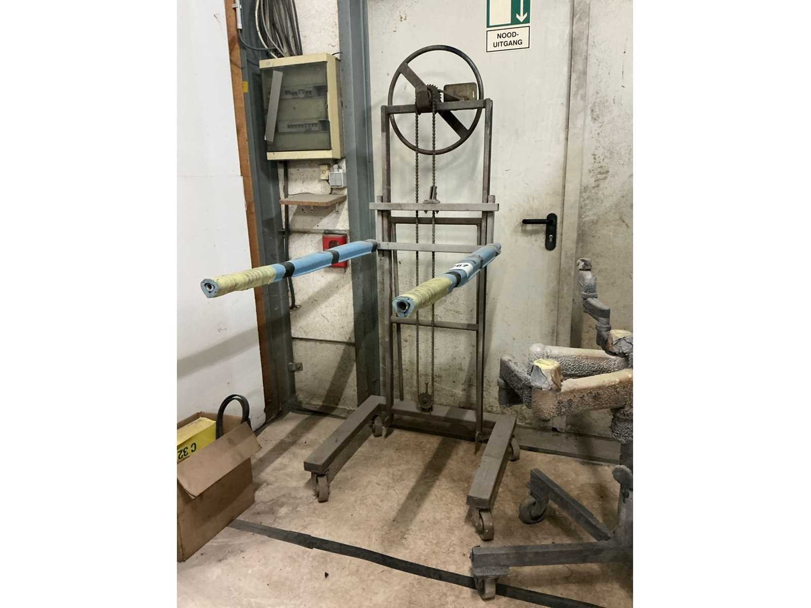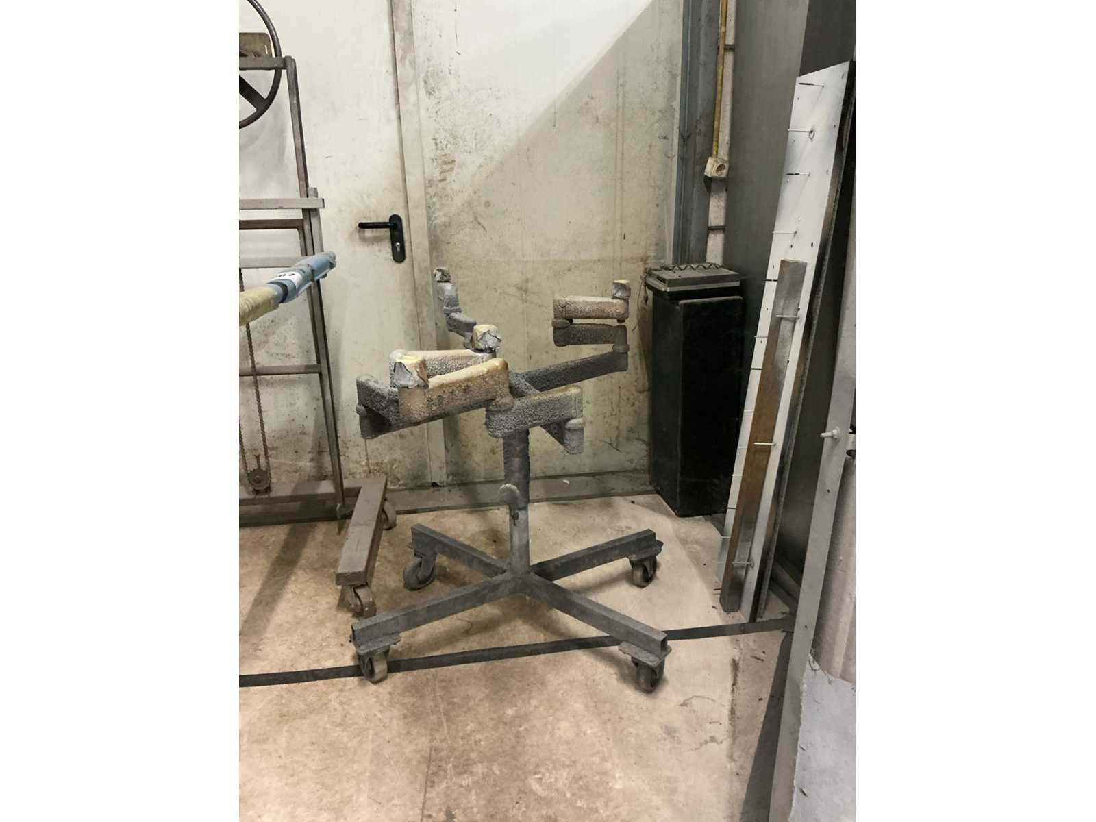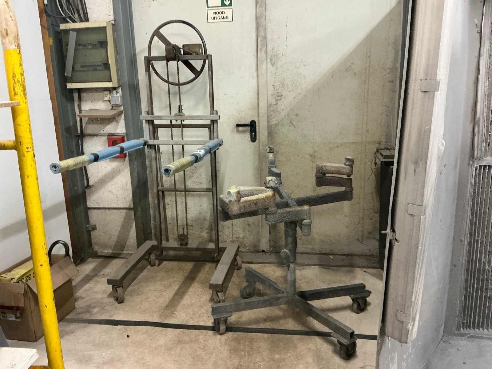 Compleet met verrijdbaar verfstatief voorzien van zwenkbare armen met afmeting circa 150 x 150 cm in hoogte verstelbaar Plateau afm. l: 700mm Plateau afm. b: 1160mm Totale afmeting Hoogte: 1800mm