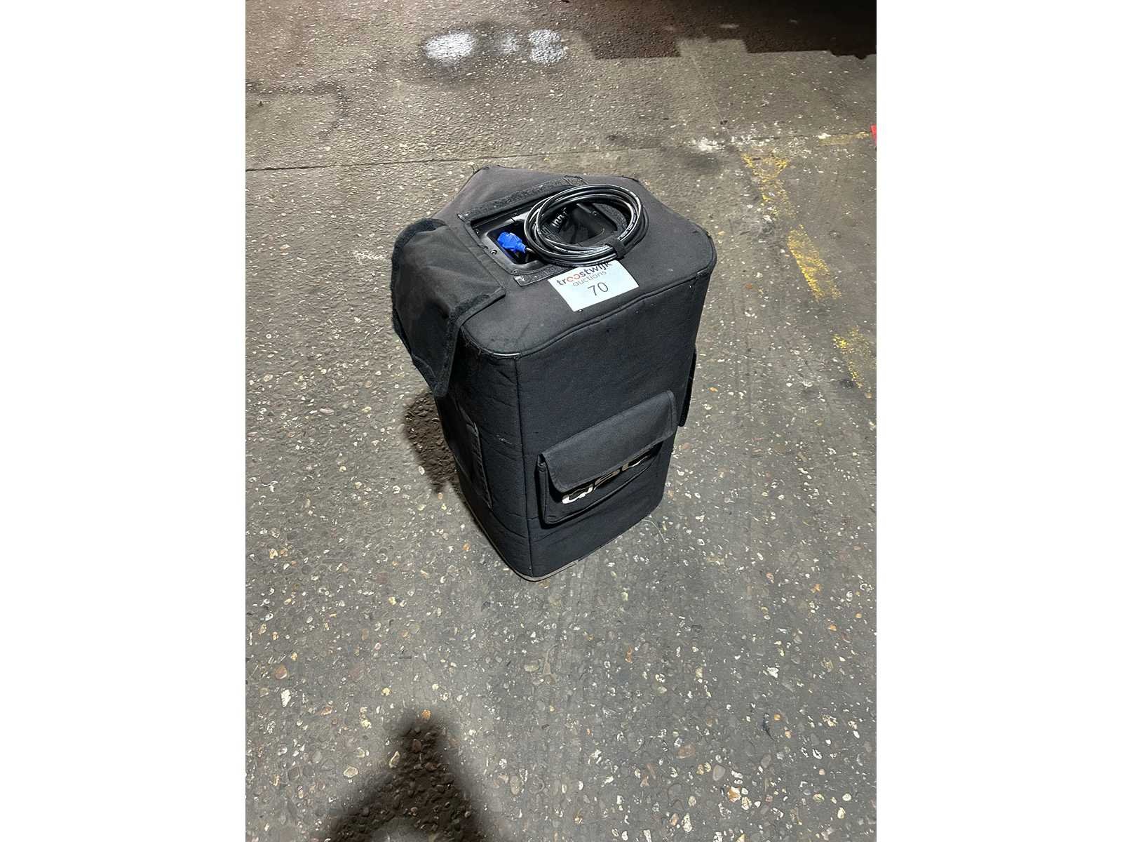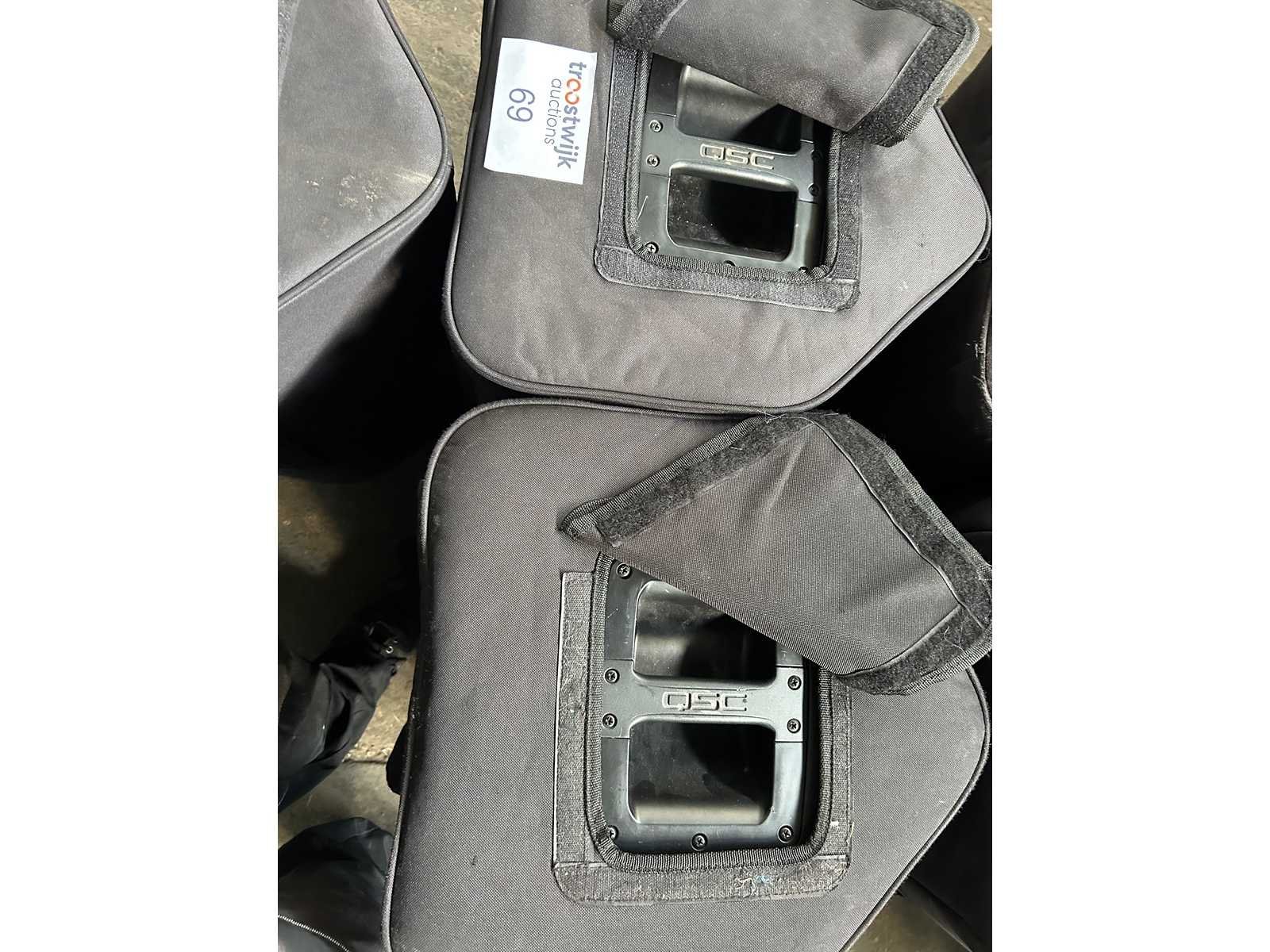 Goede staat Set van 2 speakers met hoes en stroomkabel (cijfers op de hoezen van de individuele speakers irrelevant) Merk: QSC Type: kW122 Actief: true