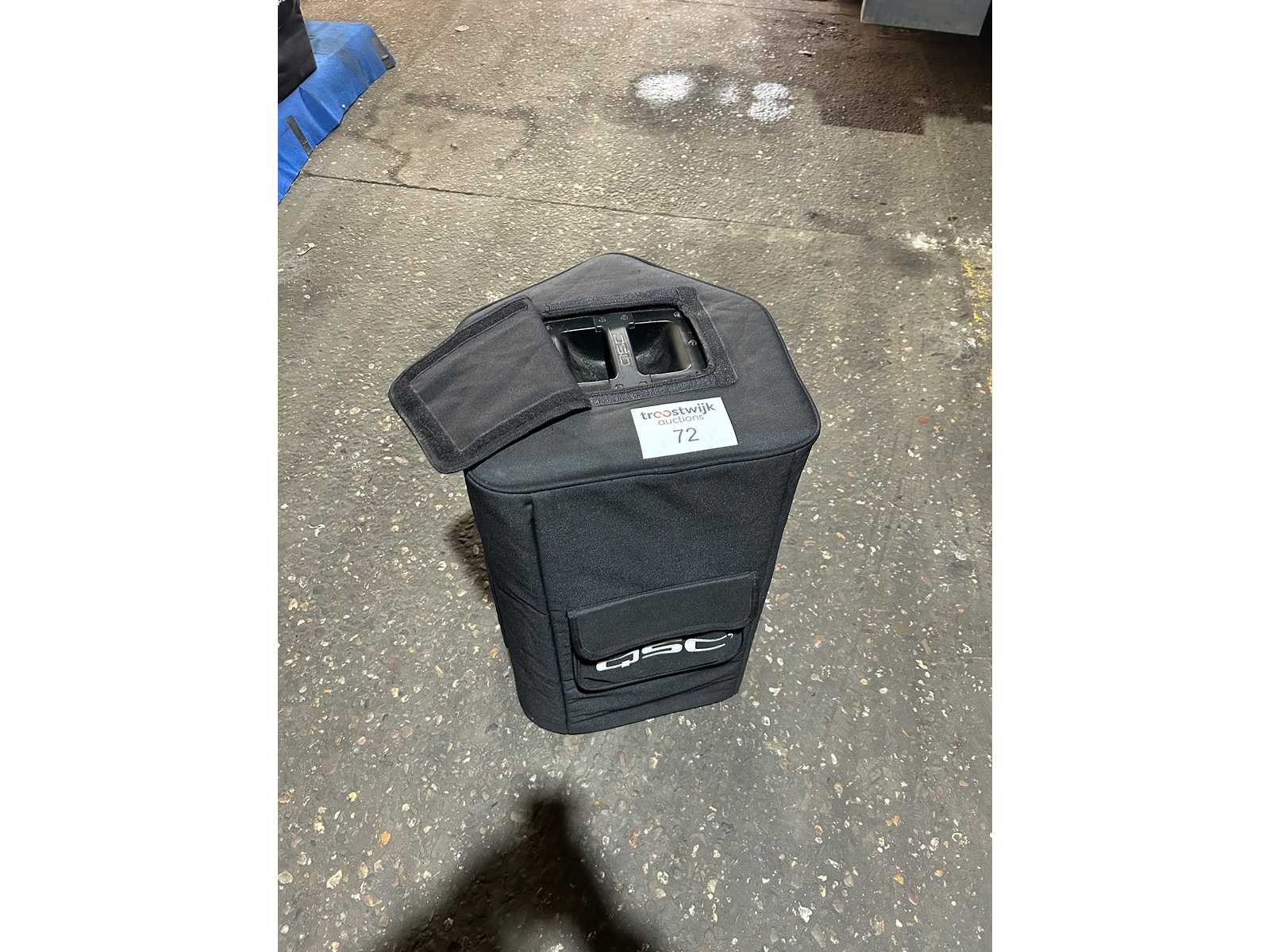 Goede staat Set van 2 speakers met hoes en stroomkabel (cijfers op de hoezen van de individuele speakers irrelevant) Merk: QSC Type: kW122 Actief: true
