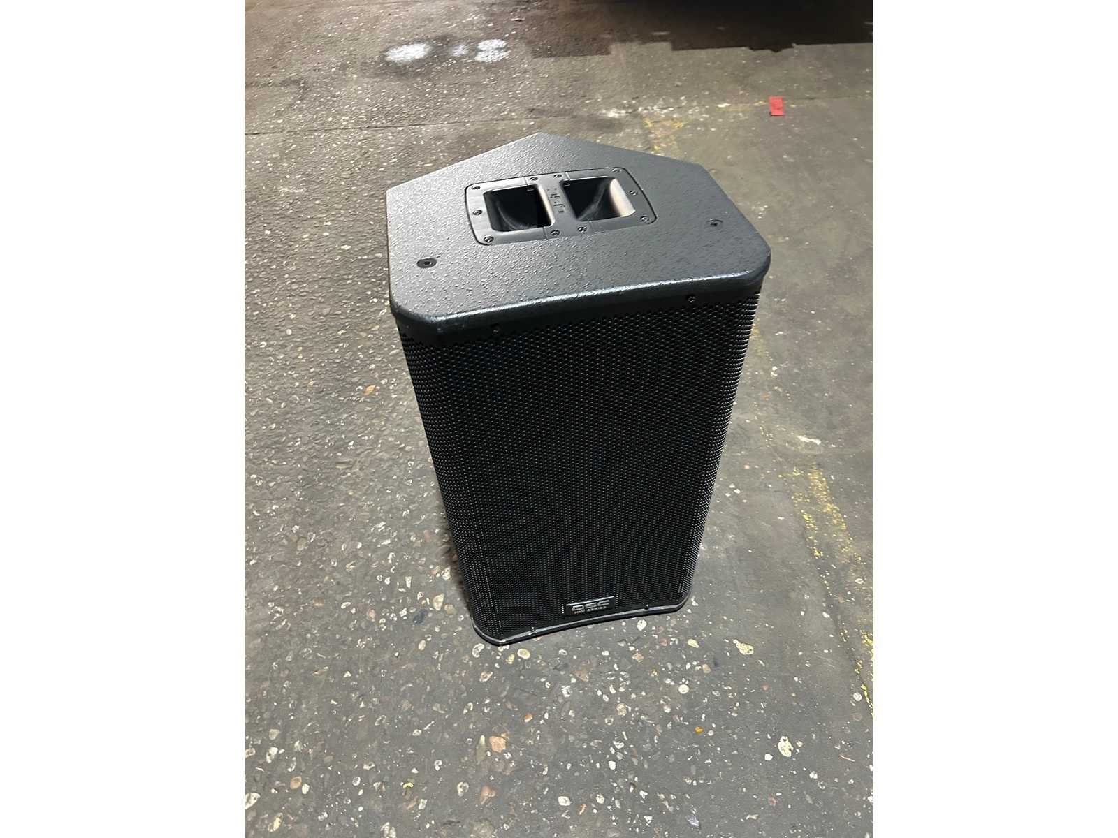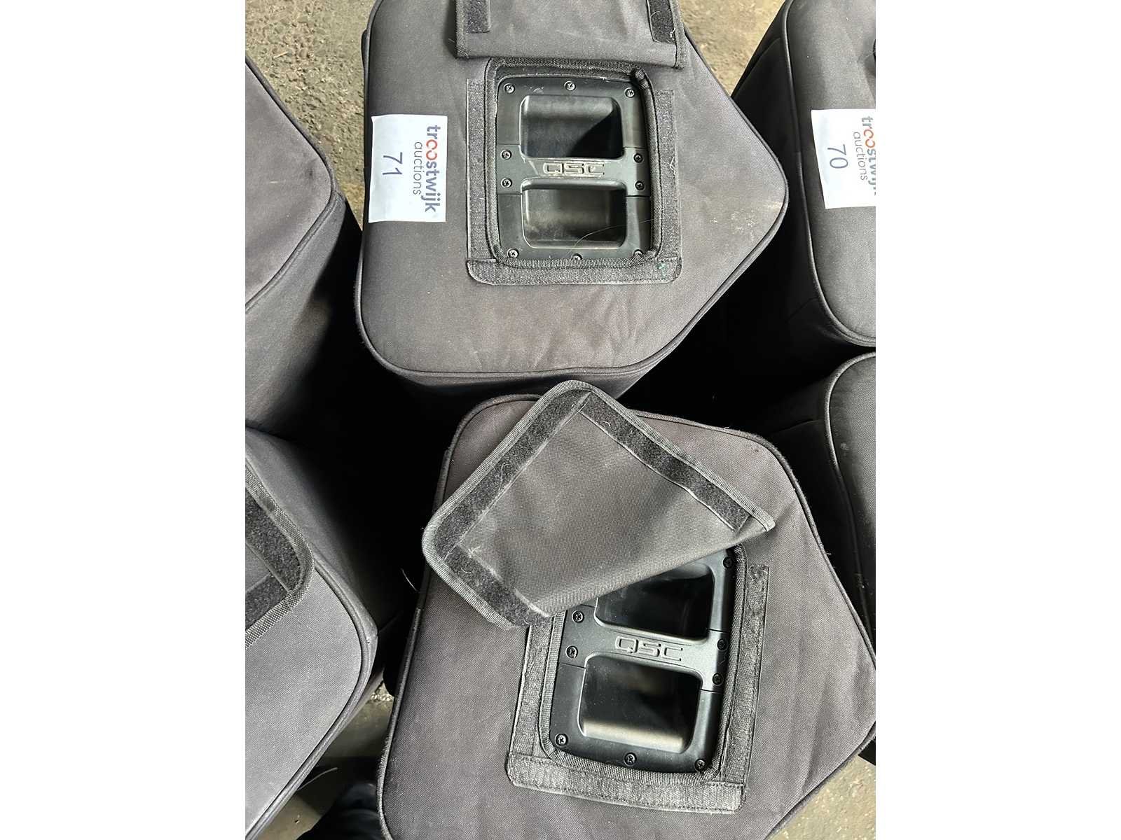 Goede staat Set van 2 speakers met hoes en stroomkabel (cijfers op de hoezen van de individuele speakers irrelevant) Merk: QSC Type: kW122 Actief: true