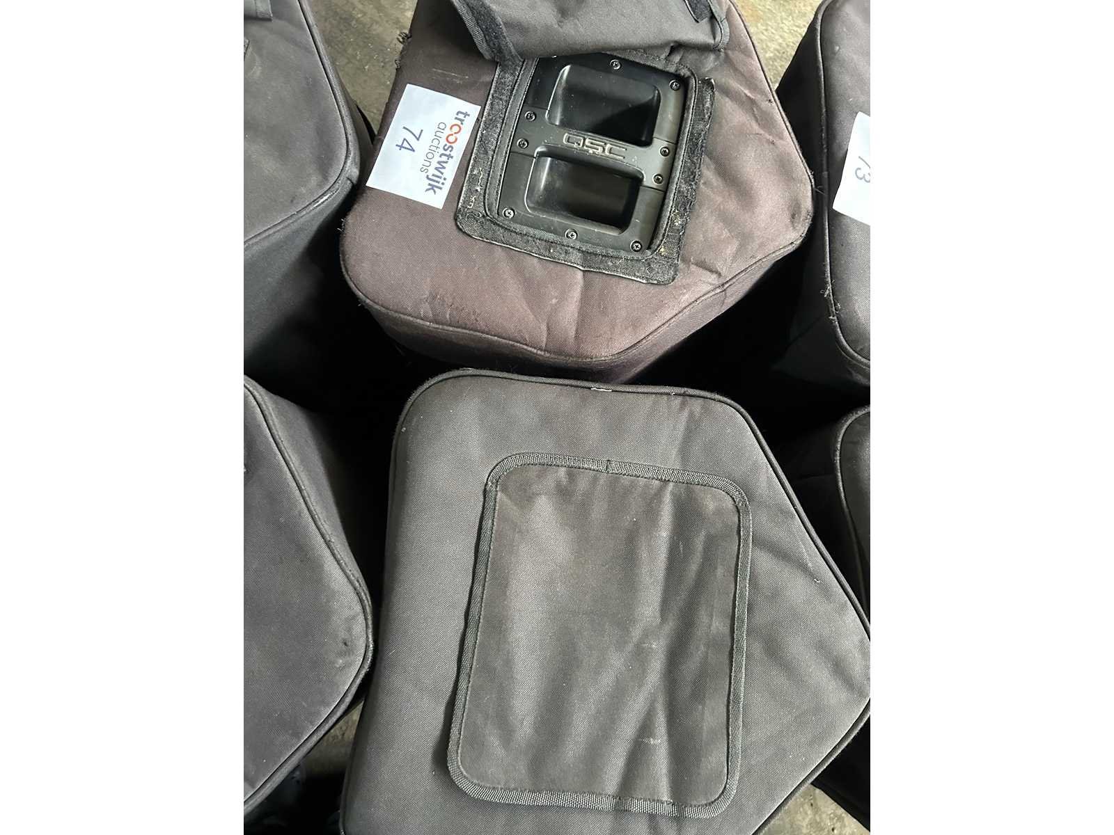 Goede staat Set van 2 speakers met hoes en stroomkabel (cijfers op de hoezen van de individuele speakers irrelevant) Merk: QSC Type: kW122 Actief: true