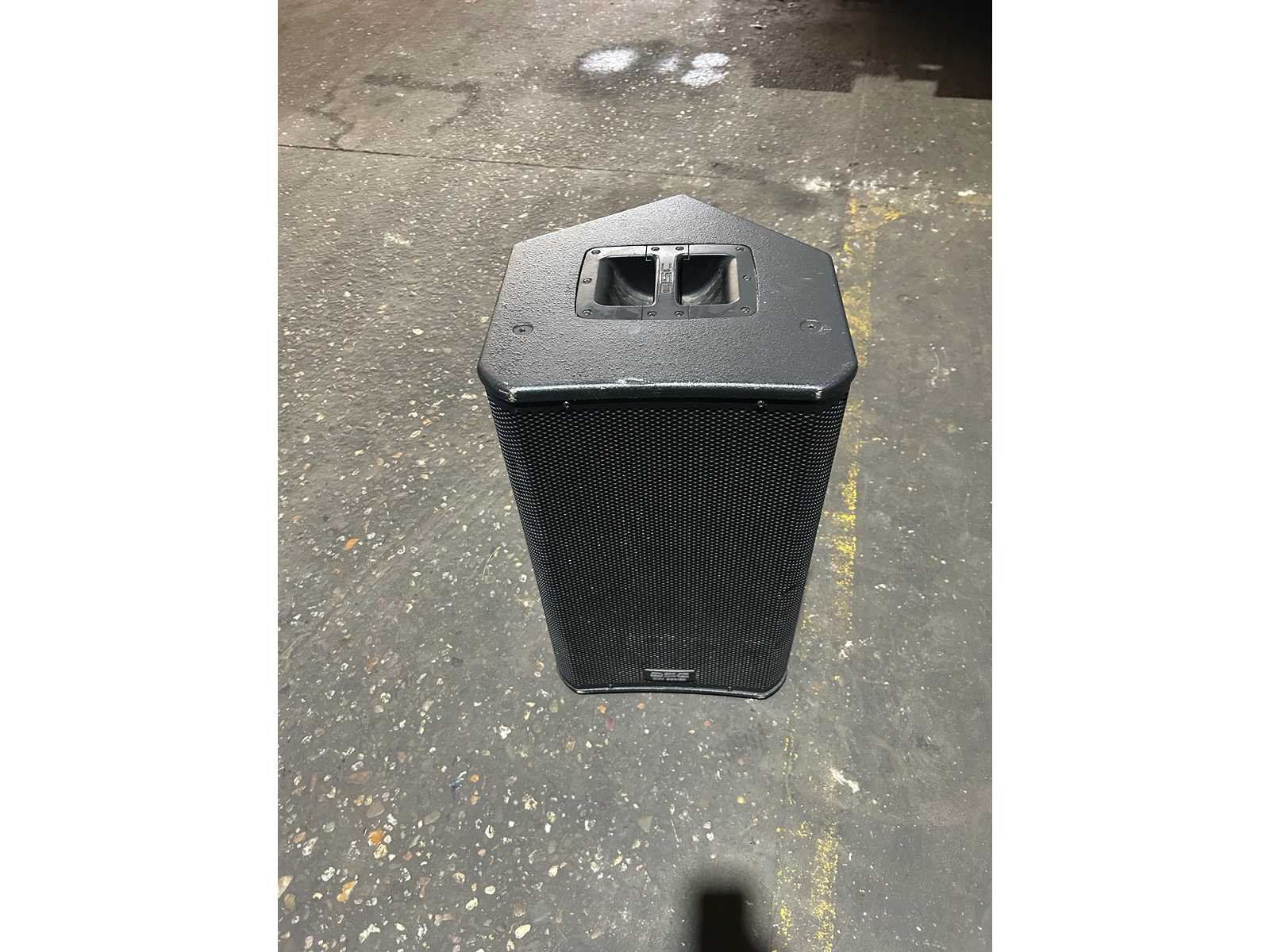 Goede staat Set van 2 speakers met hoes en stroomkabel (cijfers op de hoezen van de individuele speakers irrelevant) Merk: QSC Type: kW122 Actief: true