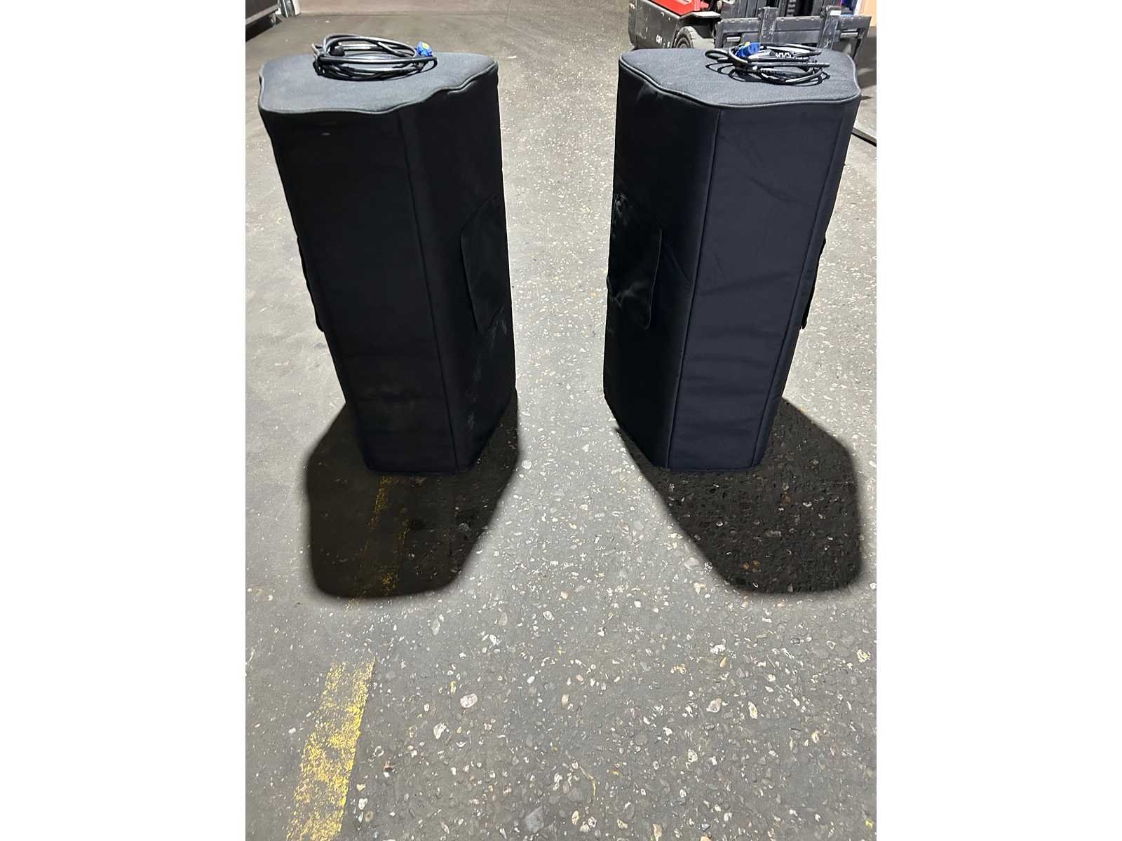 Goede staat Set van 2 speakers met hoes en stroomkabel Merk: QSC Type: kW152