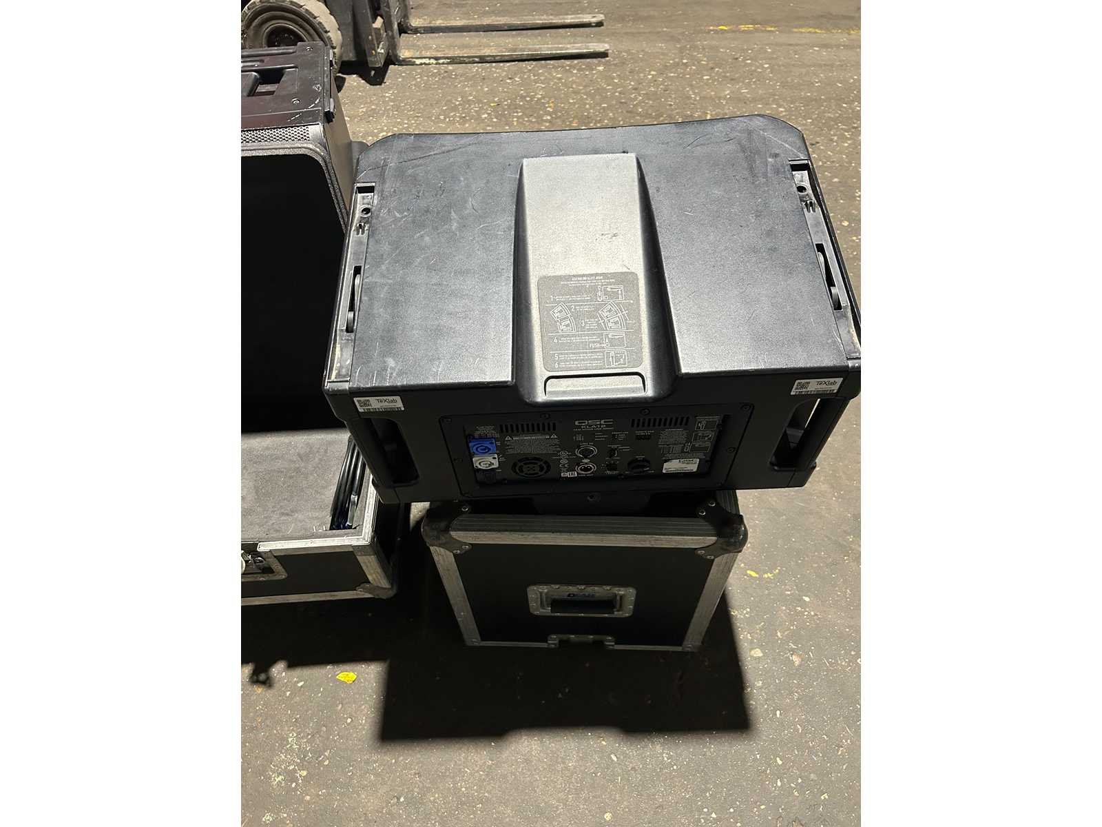 QSC Line Array KLA 2x KLA12 in flightcase met kabels Merk: QSC Type: KLA12 Actief: true Vermogen: 1000W Aansluiting: 220V Met flightcase: true
