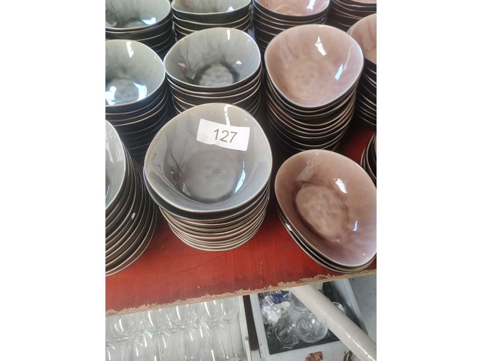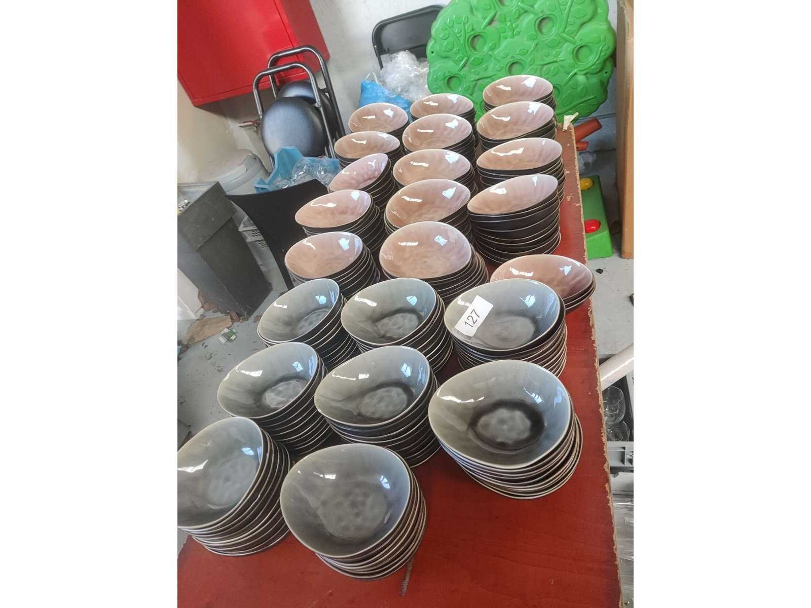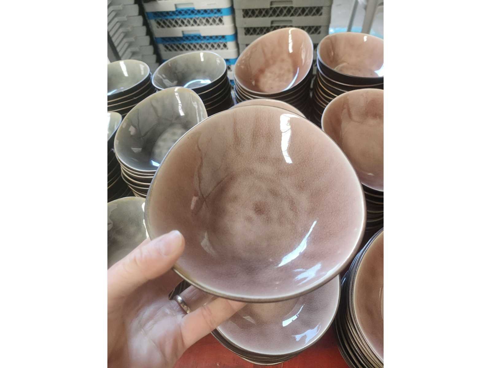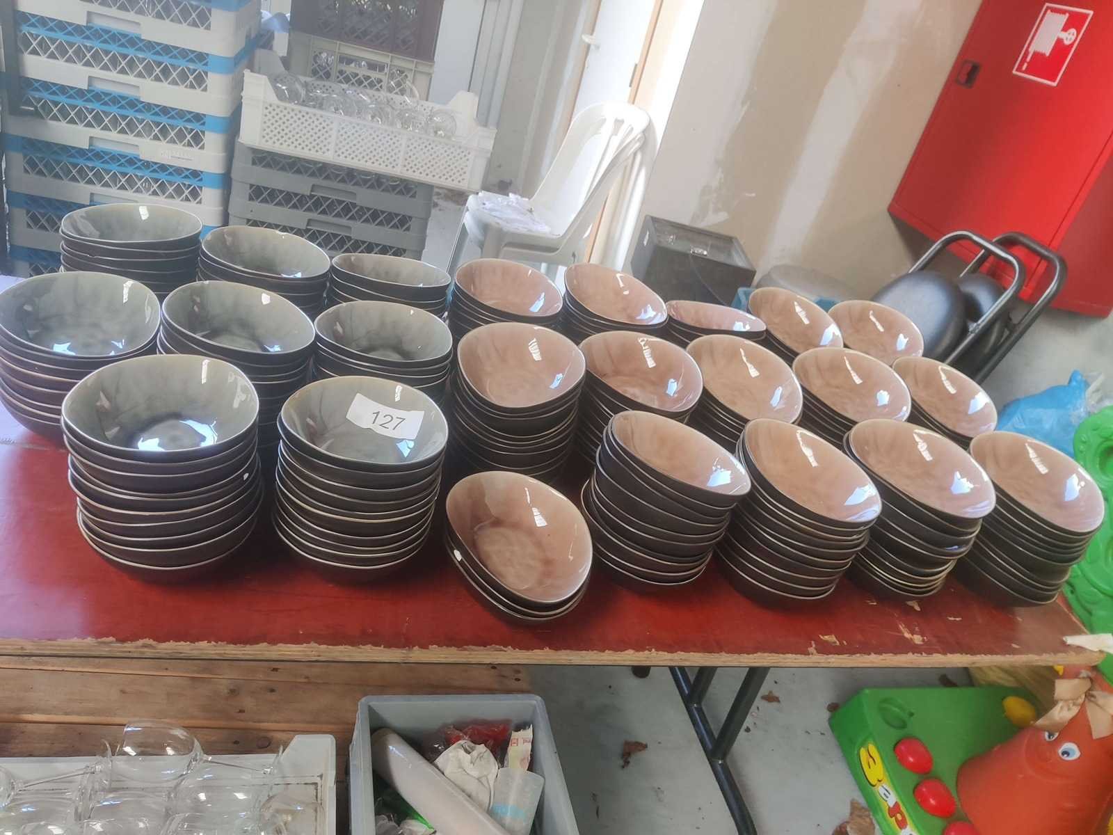 Lot van 78 groen ovalen en 143 zalmroze kommetjes (221x)