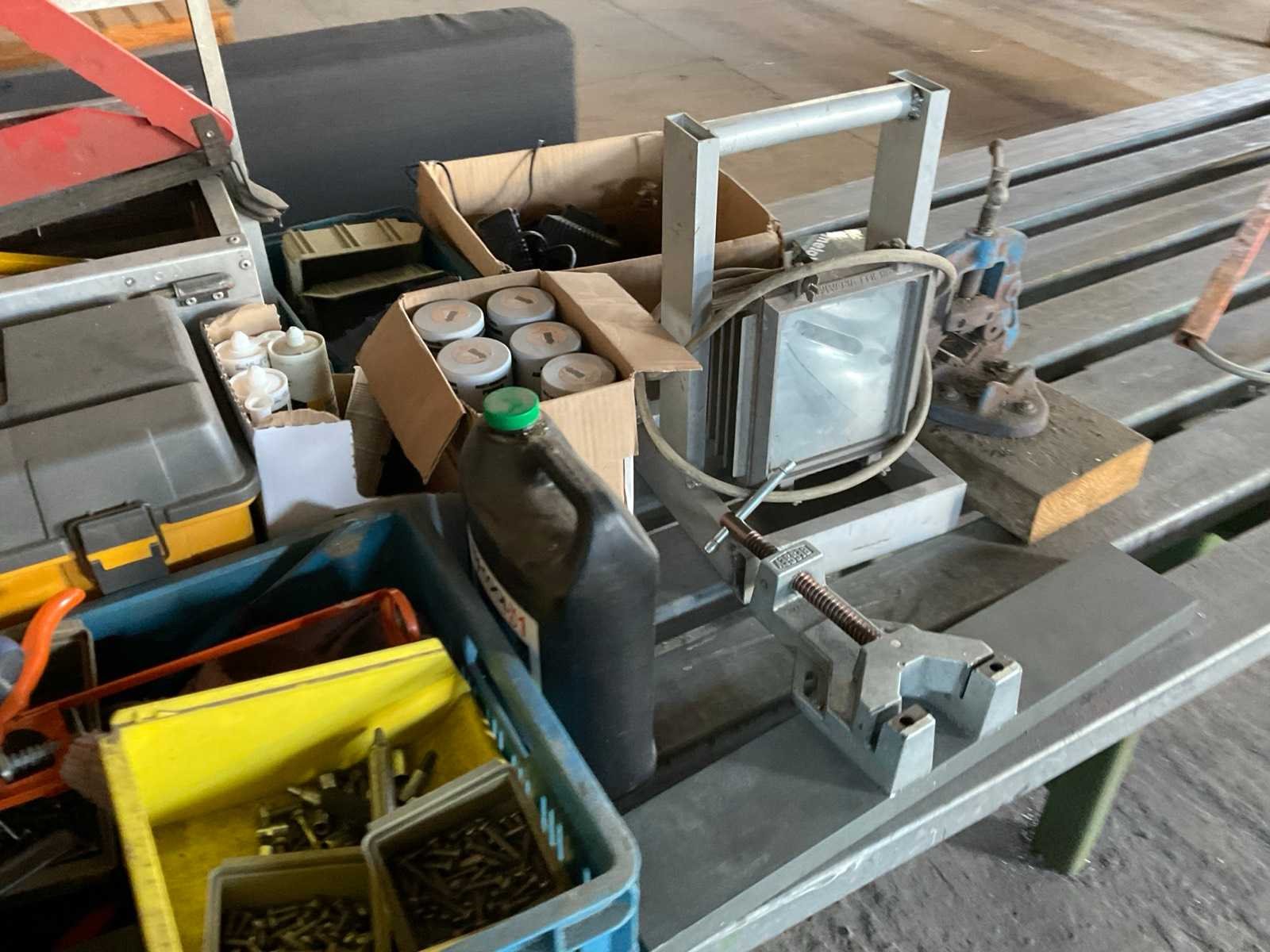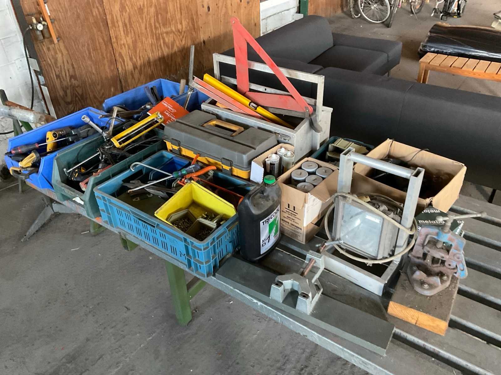 Bestaande uit: Oa elektrisch- en handgereedschap, bevestigingsmaterialen, werkplaatsbokken, etc