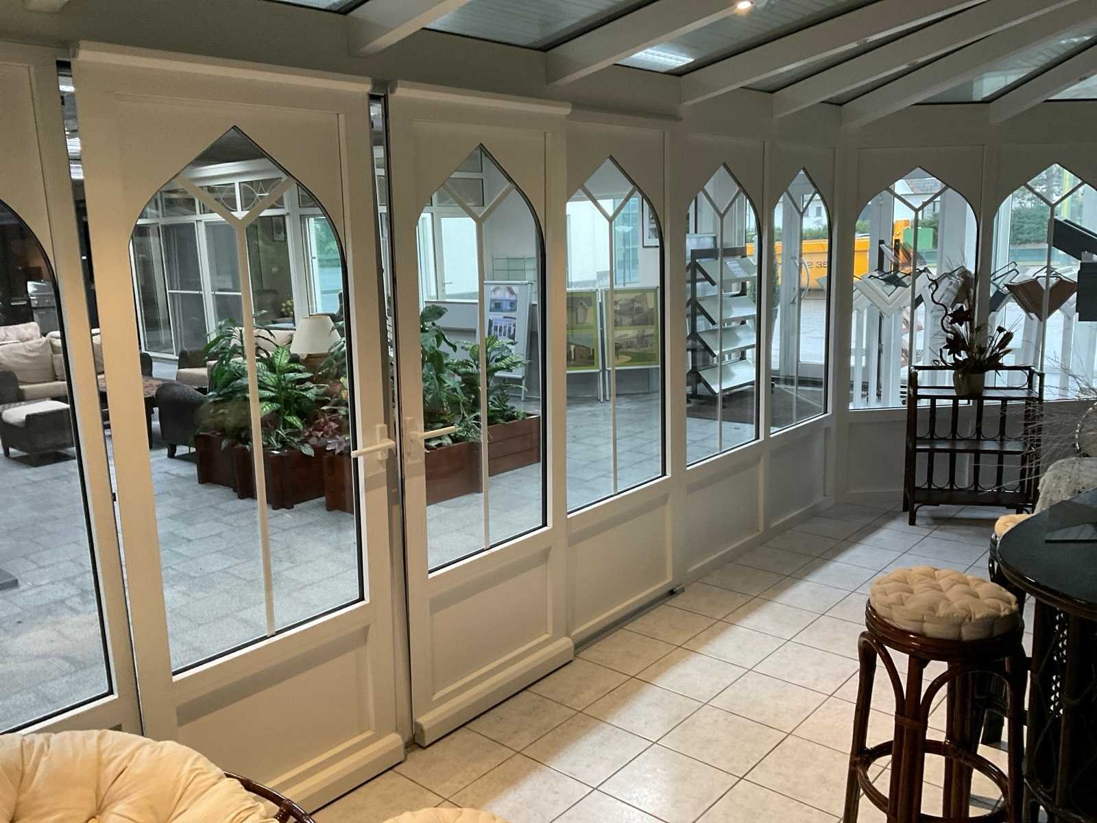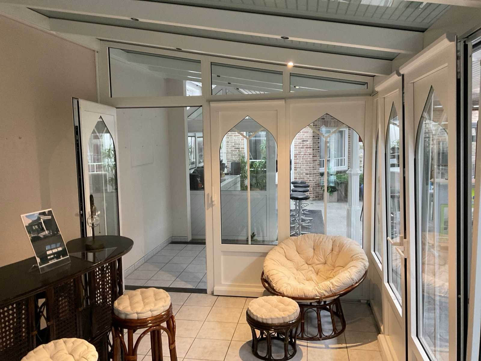 V.v. 3x hefschuifpui met kiepfunctie, beglazing met wienersprossen, spotjes en dakbeglazing Kleur: Groen Lengte: 650cm Breedte: 310cm Hoogte: 295cm