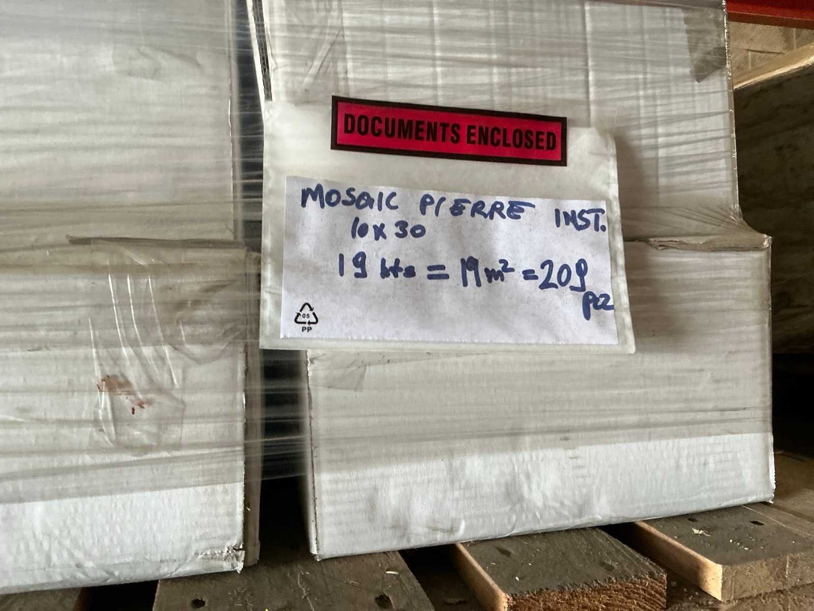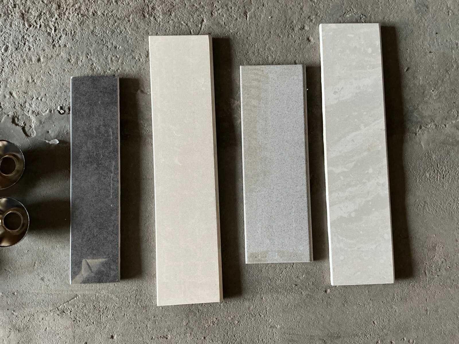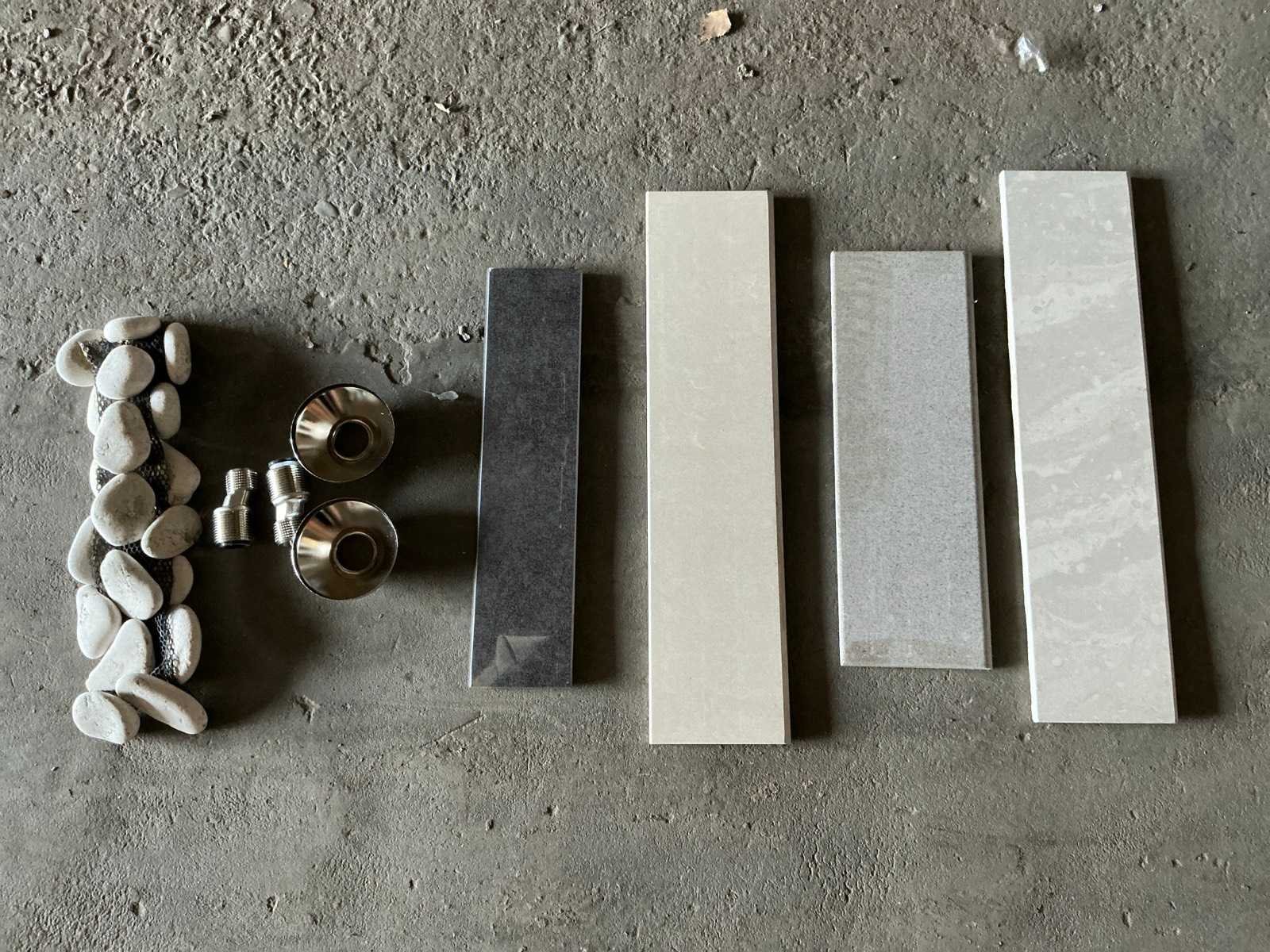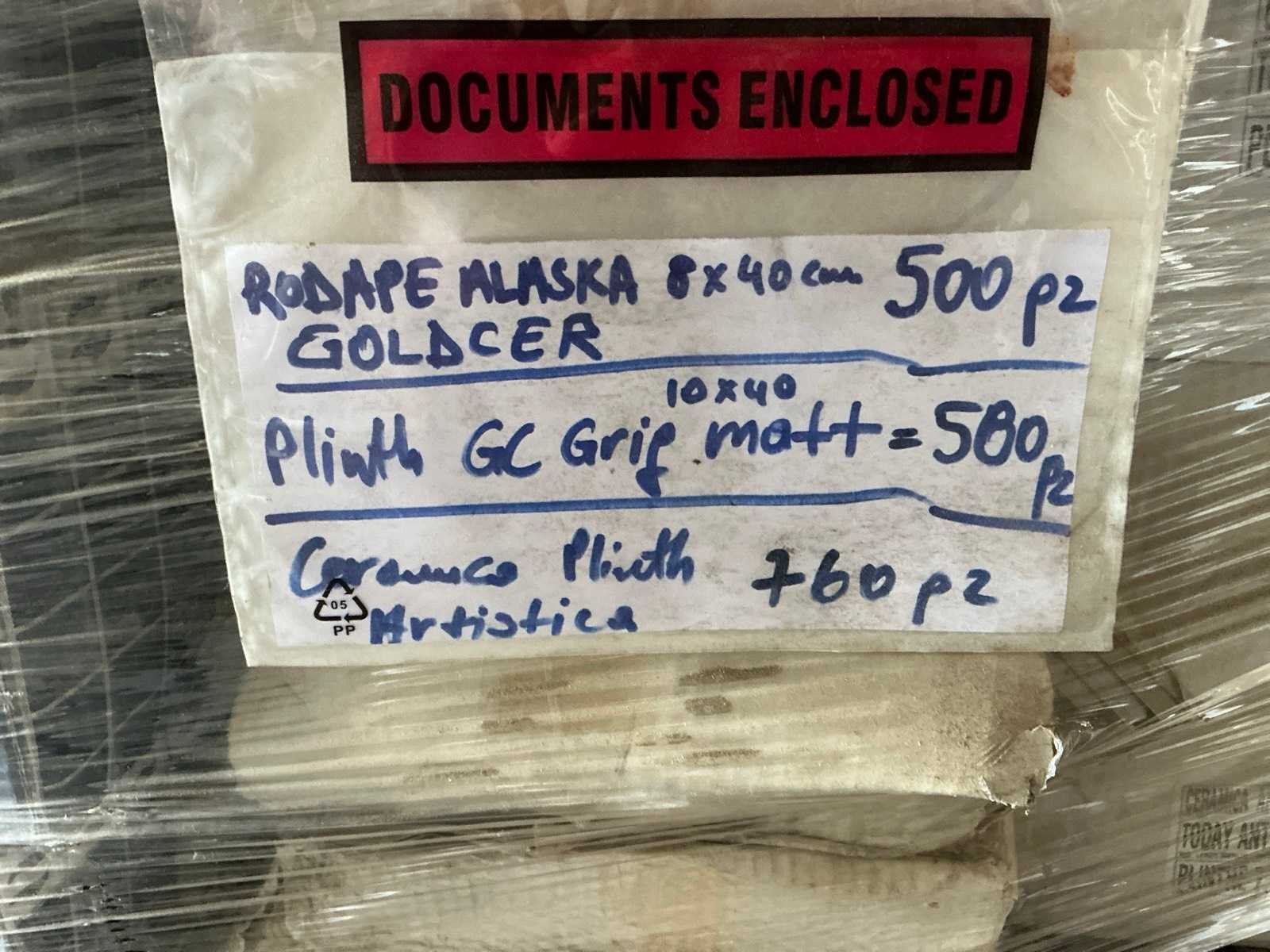 Bestaande uit plint Mosaic Pierre 10 x 30cm, plint Rodape Alaska 8 x 40cm, plint GC grif. mat 10 x 40cm, plint Grigio 9,5 x 40cm, plint Agata 10 x 30cm. Afgifte volgens aanwijzing.