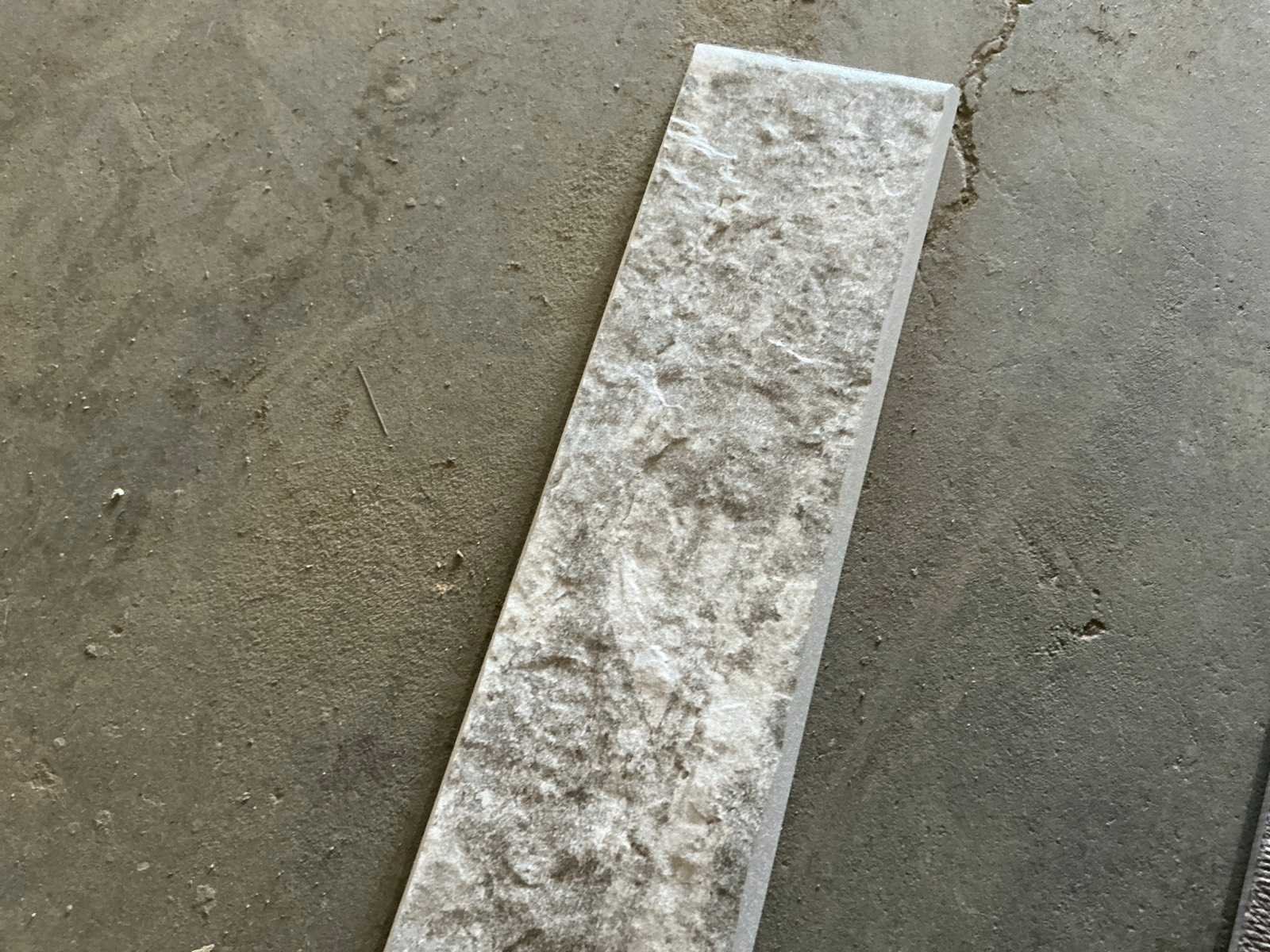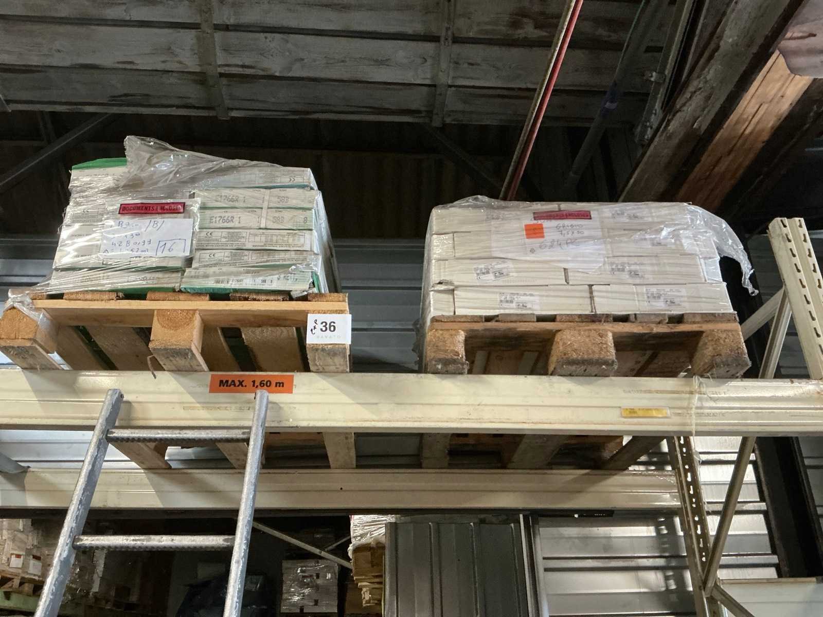 Waaronder tegels Scelta Alabastro Greenlite E1766R1 30 x 30cm, liggende in 48 dozen van 11 tegels per doos en plinten Gruppo Ceramiche Gresmalt PF00001243 Sunset 730 Grigio Bat CB4PZ. Liggende op 2x pallet.