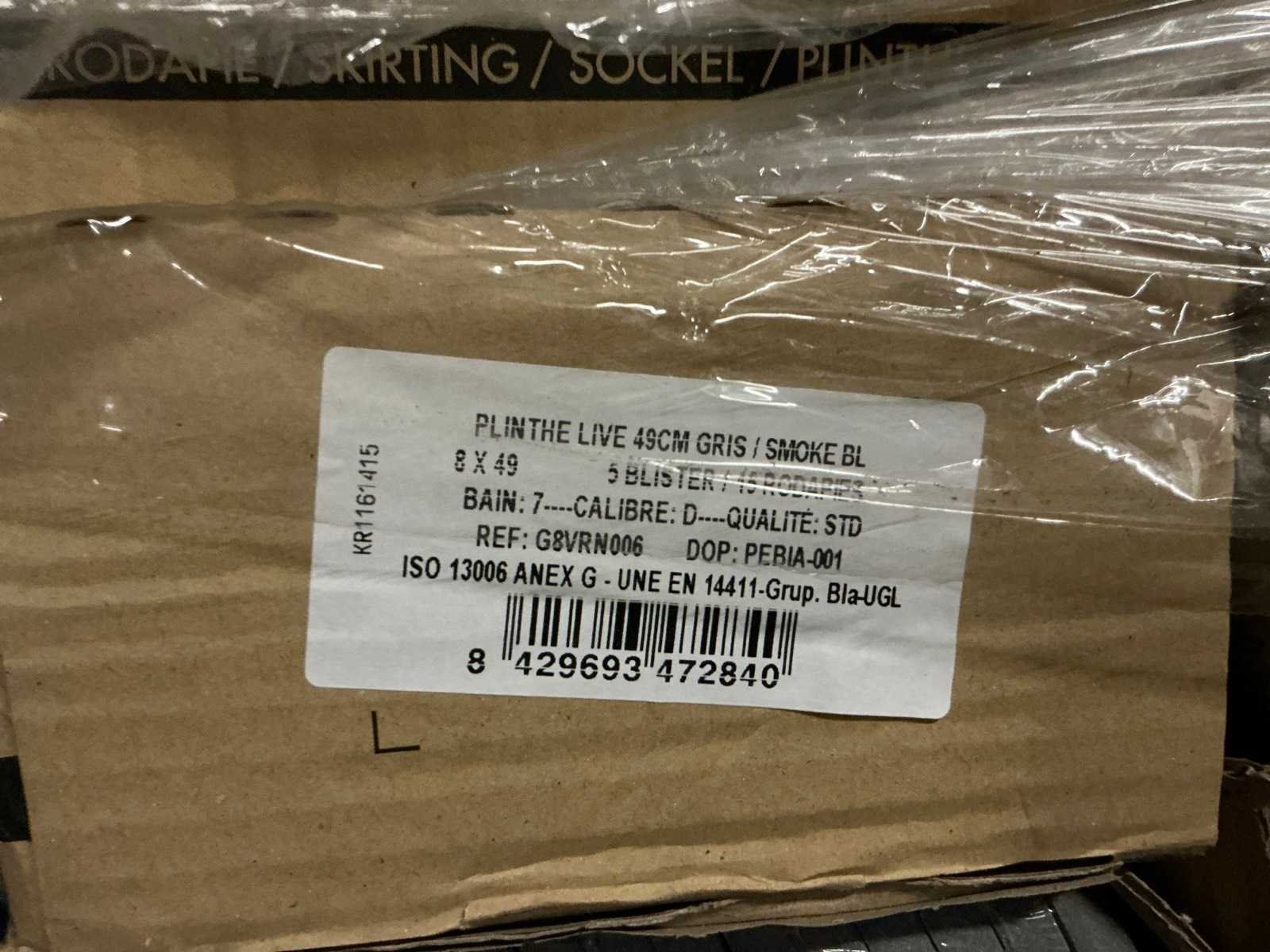 Waaronder diverse frisétegels 20x7,5cm, listels 30x5cm, Battiscopa New York graphite 8x60cm, diverse plinten waaronder Live 8x49cm grijs, Rod Polar en Revenge,..