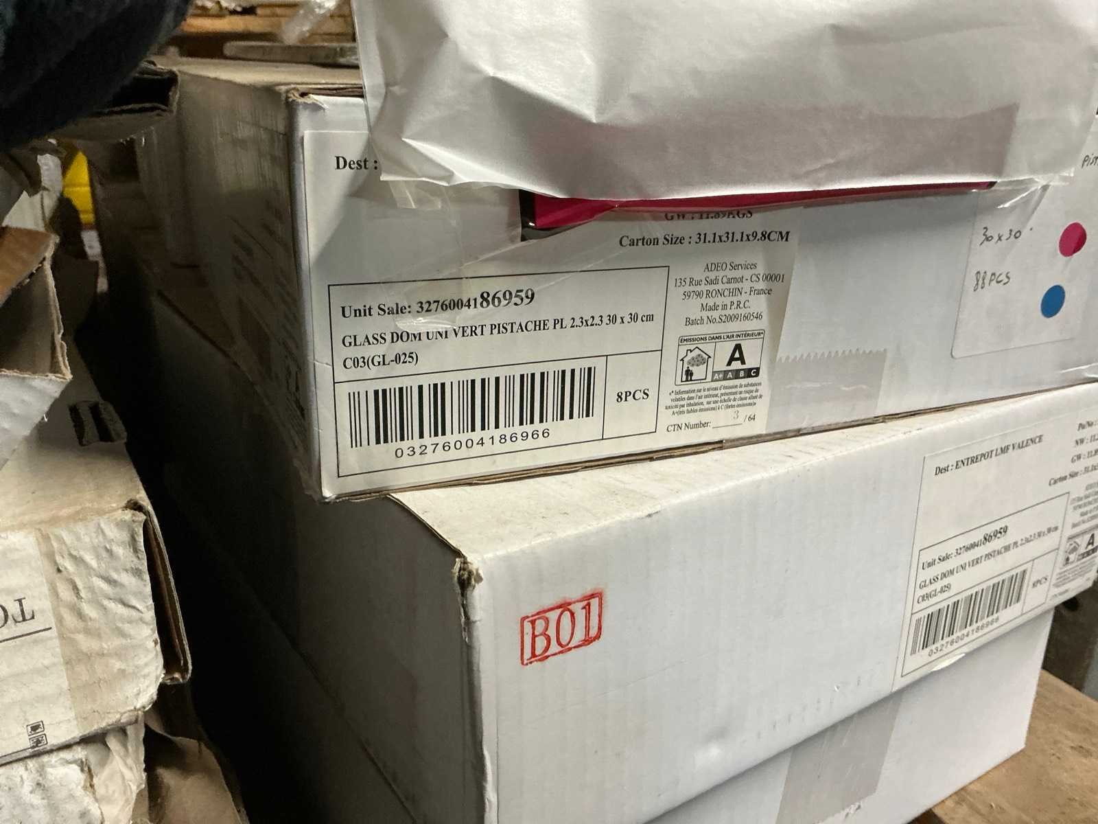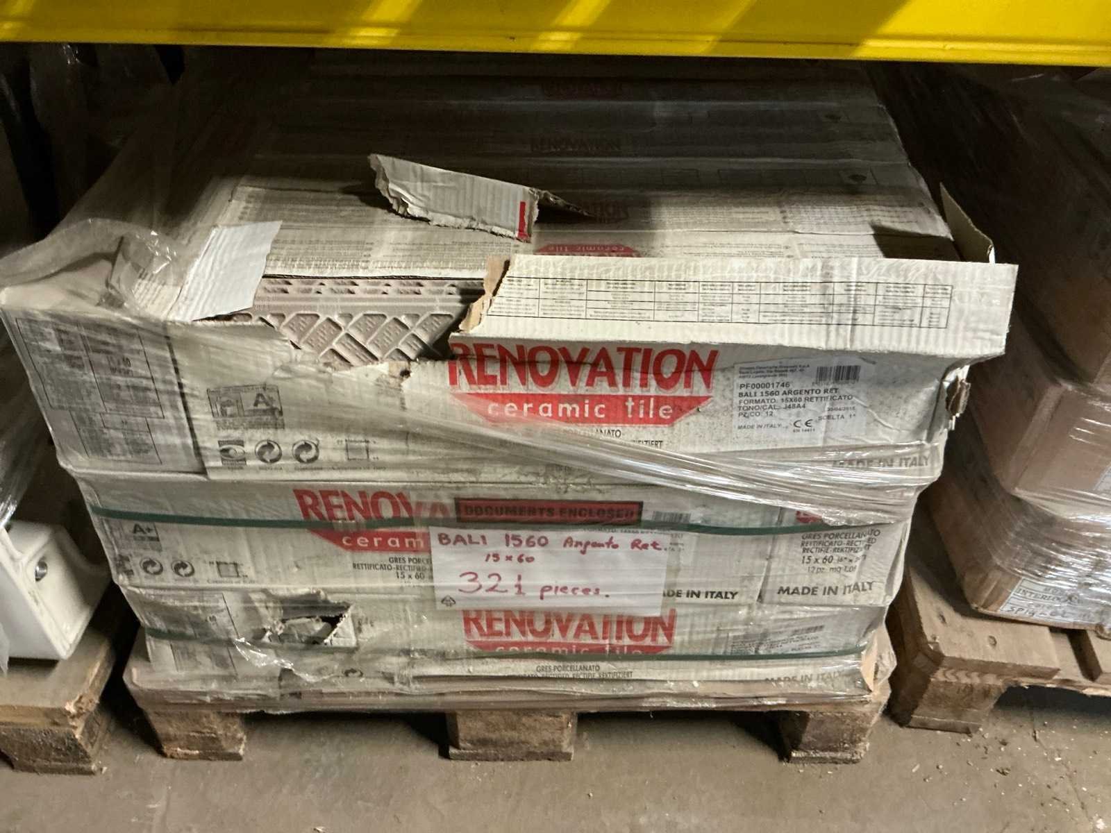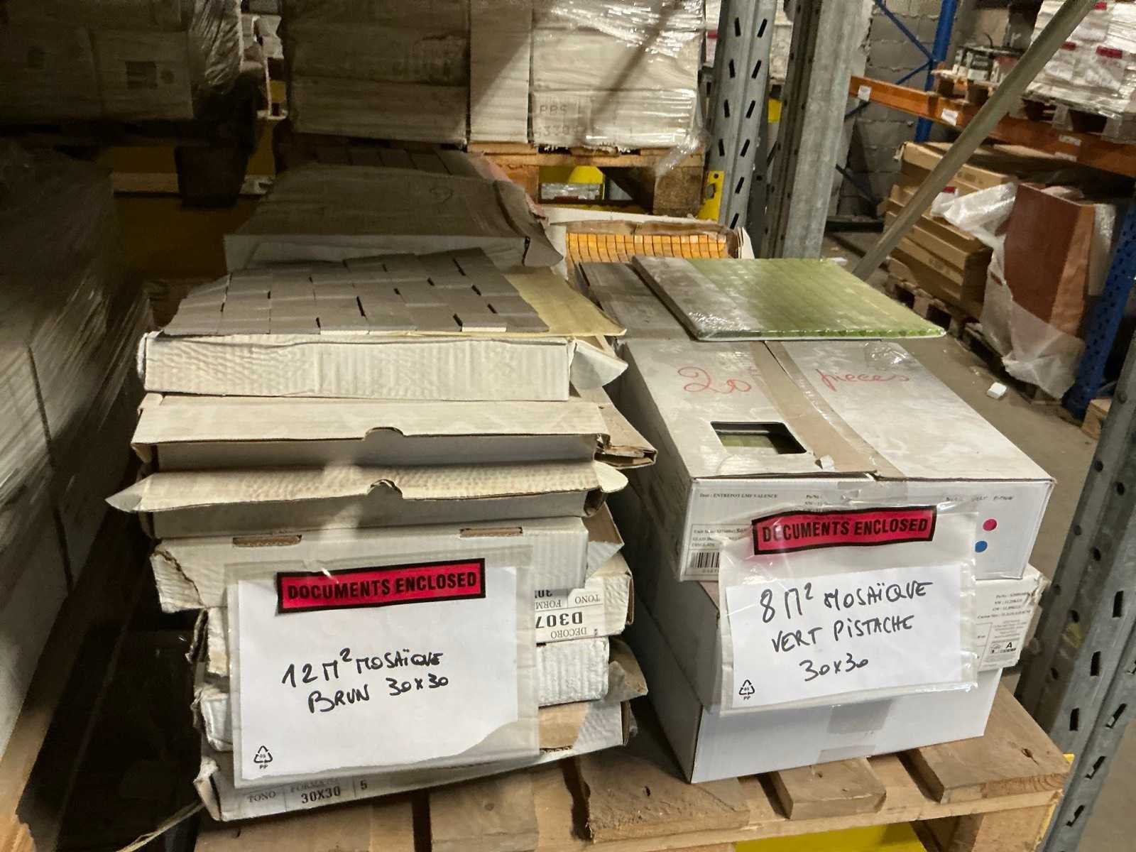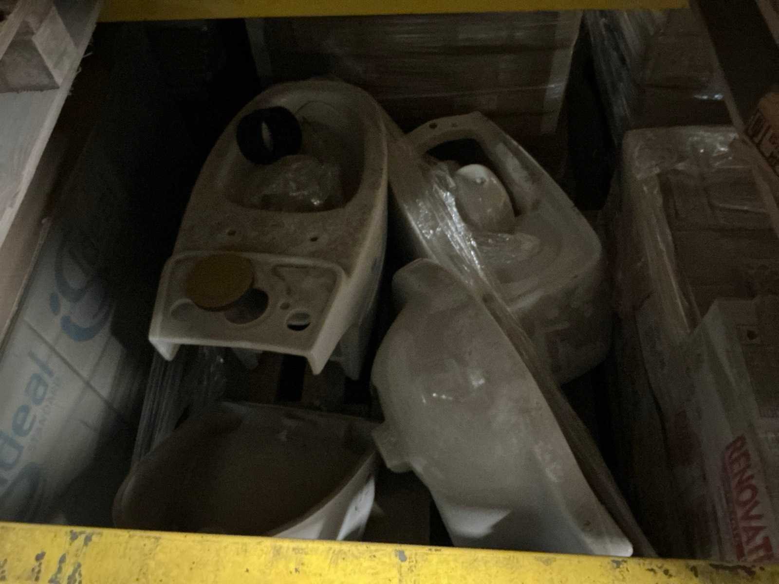 Waaronder Mosaique 8m2 groen en 12m2 bruin 30x30cm, 14m2 Stabigo Pebbles , Marazzi 10x10cm Peanut, 18m2 Pebbles Thomdesign Riverstone 30x30cm, Renovation Bali Argento 15x60, compleet met 5 diverse toiletten