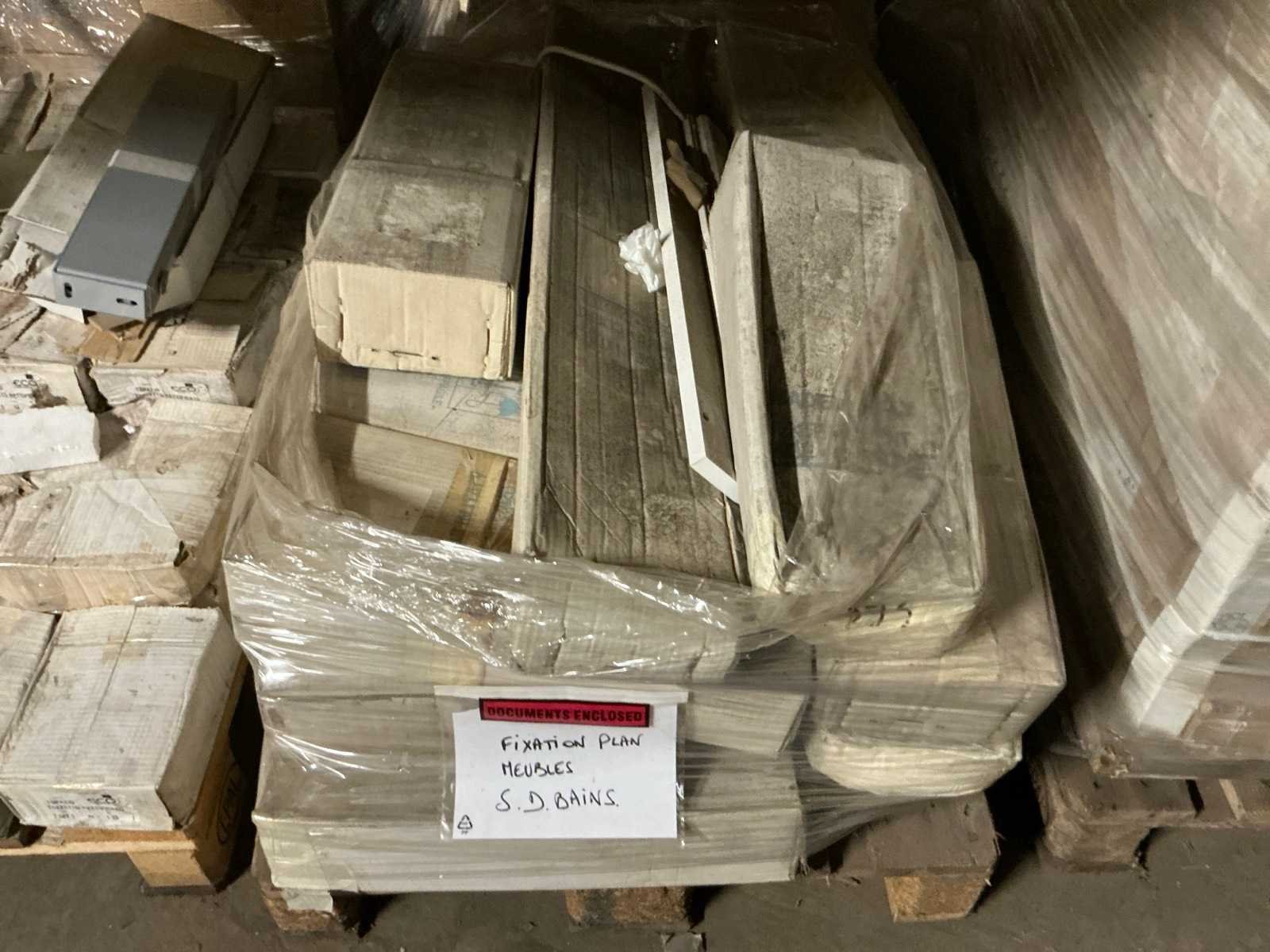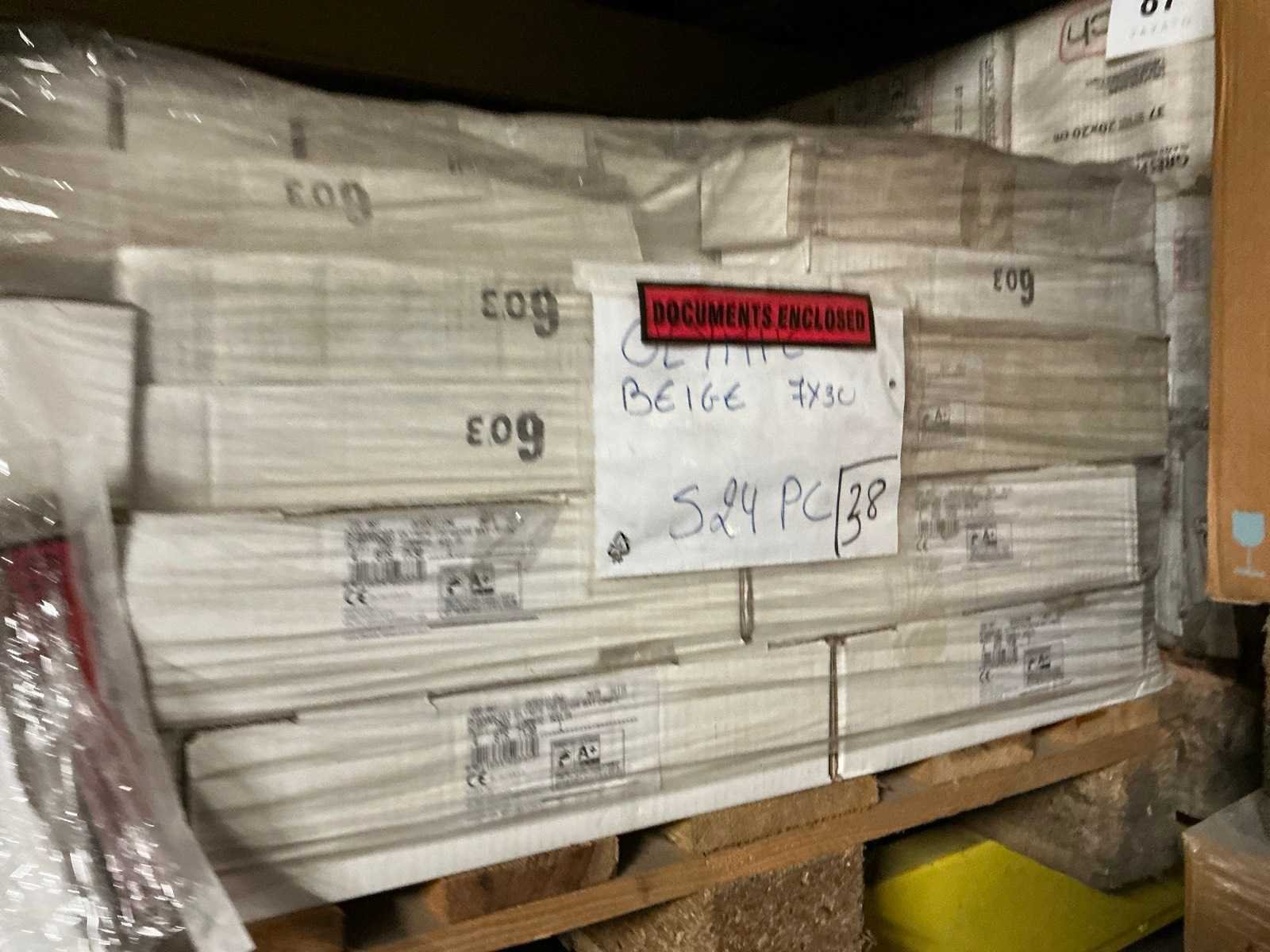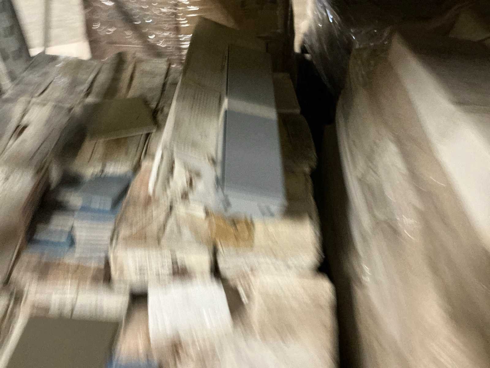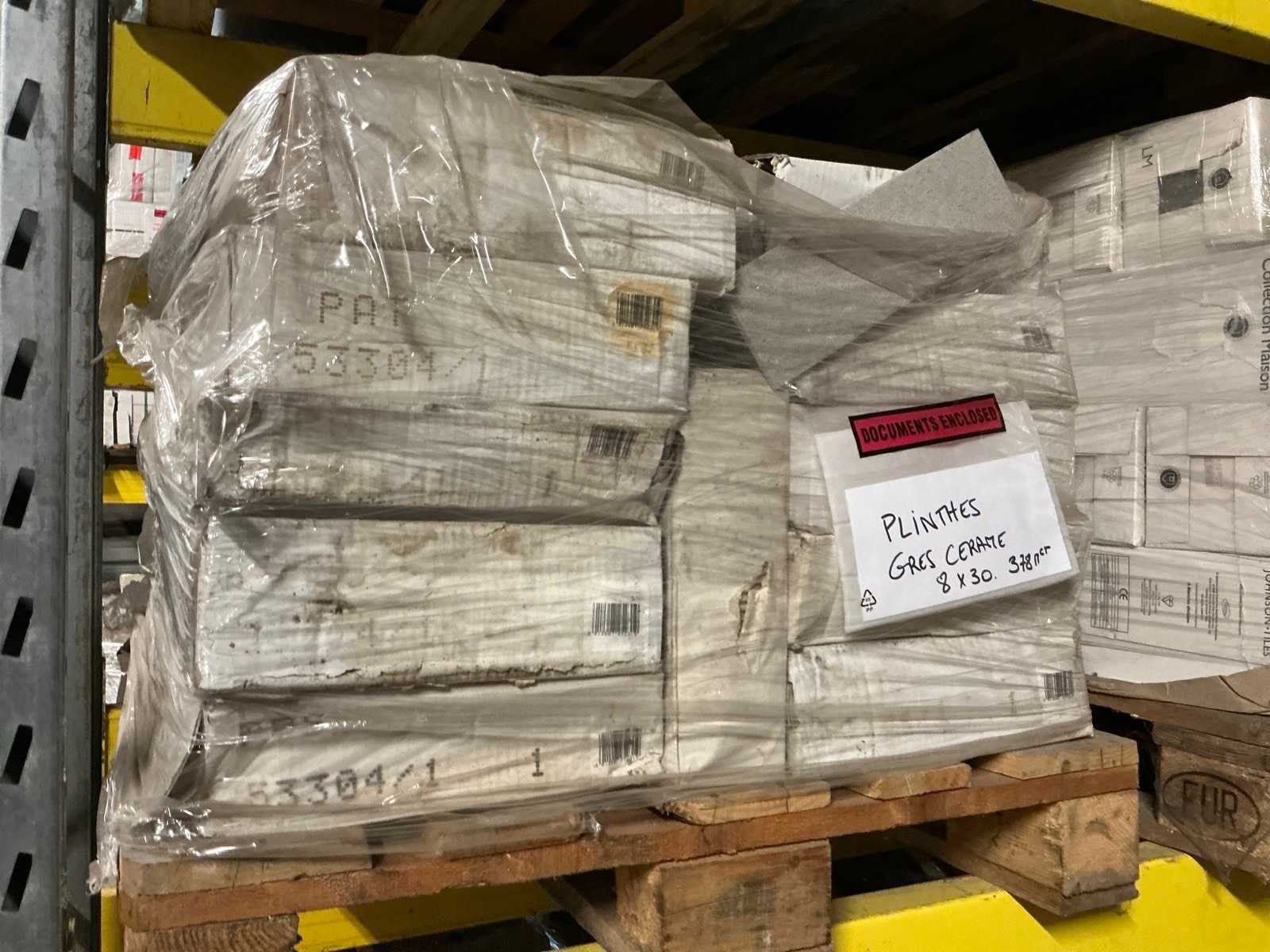 Waaronder Eco Ceramica Topazio Tozzetto 7,5x7,5, 40m2 keramische tegels Linerr zwart 72x25cm, Gres porcelanico Olympe 730 7x30, 370m plinten gres cerame 8x30cm, 5 palletten, compleet ge fixaties voor badkamermeubels