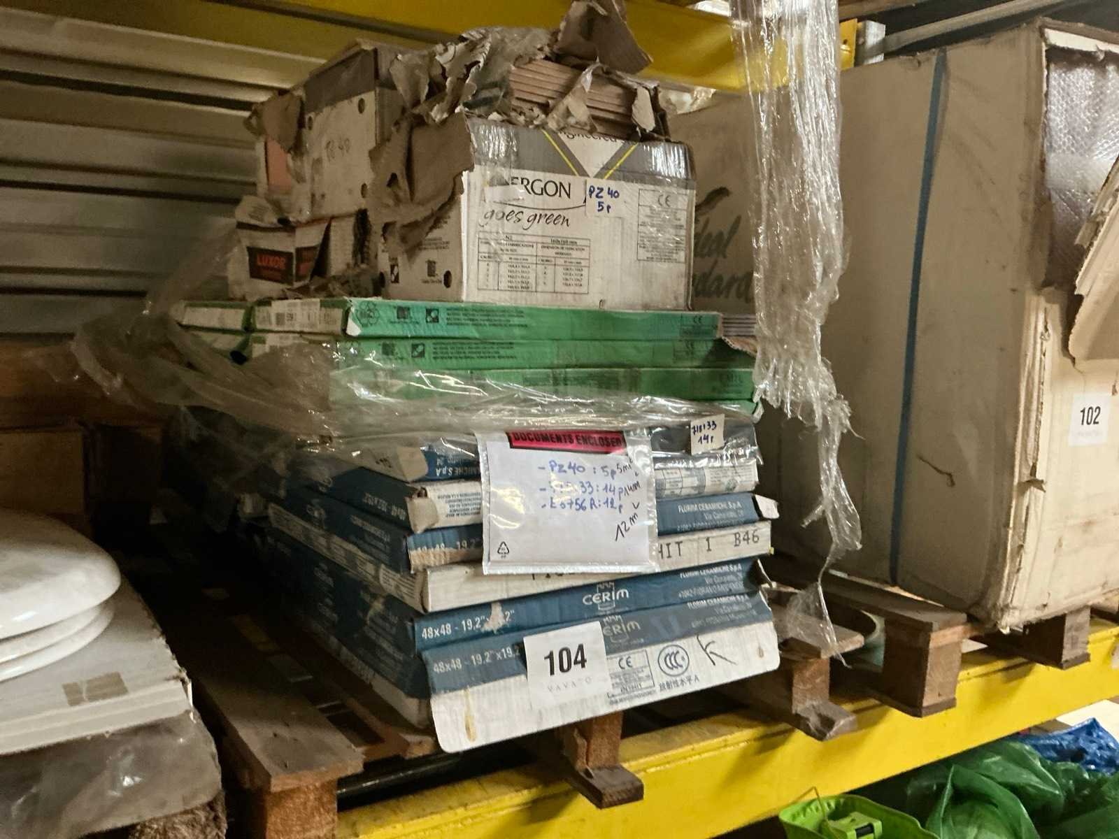 Diverse afmetingen/ 5 m2 van type PZ40/ 14 m2 van type 718133/ 12 m2 van type E5756R Merk: Cerim en Ergon