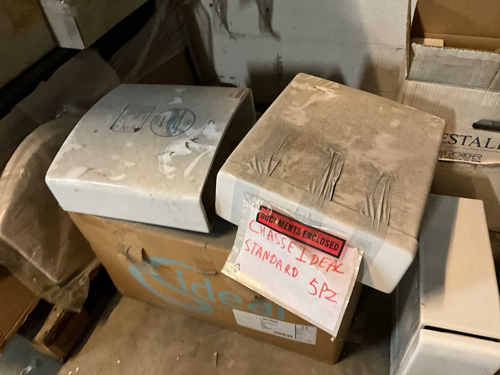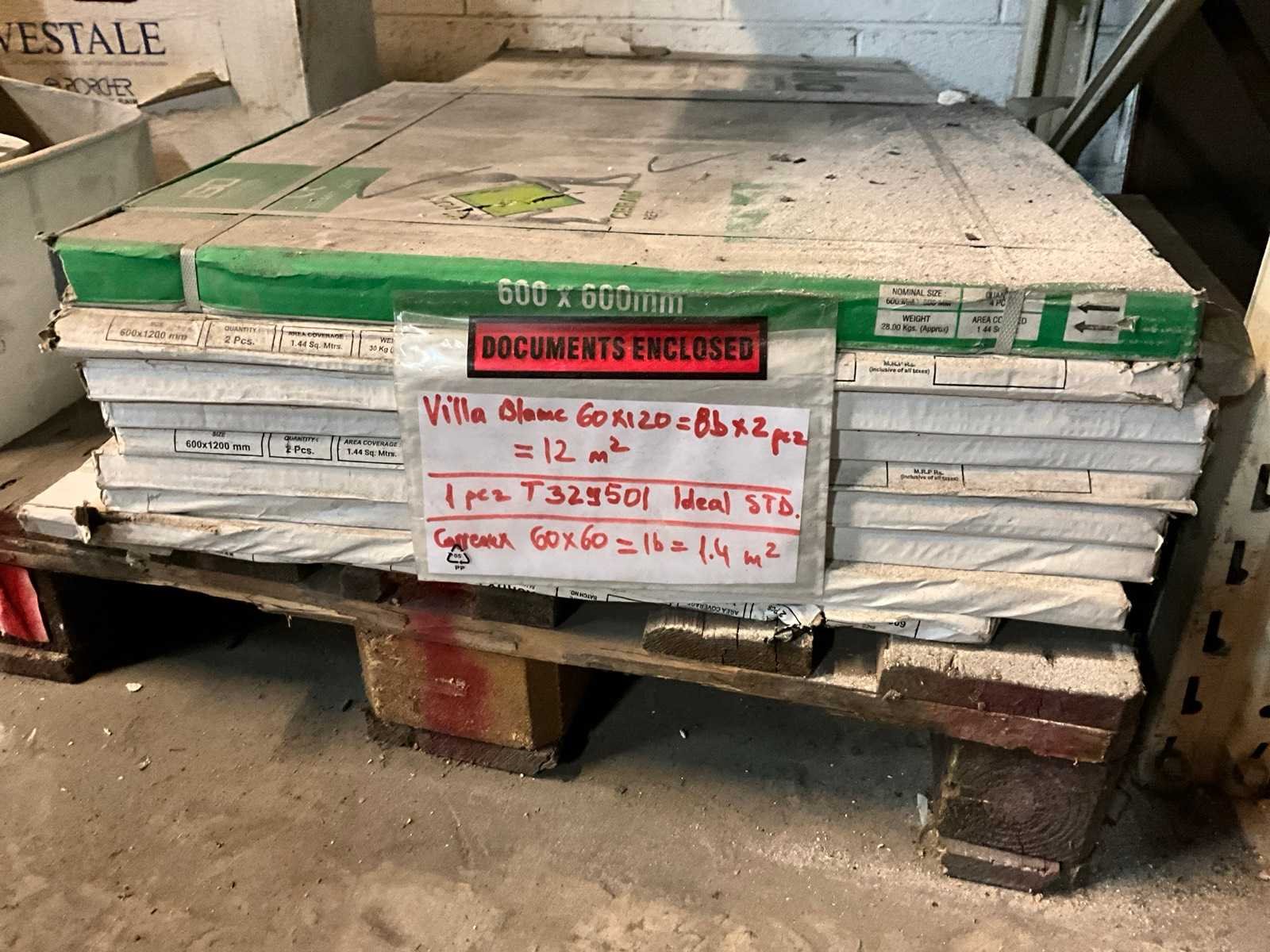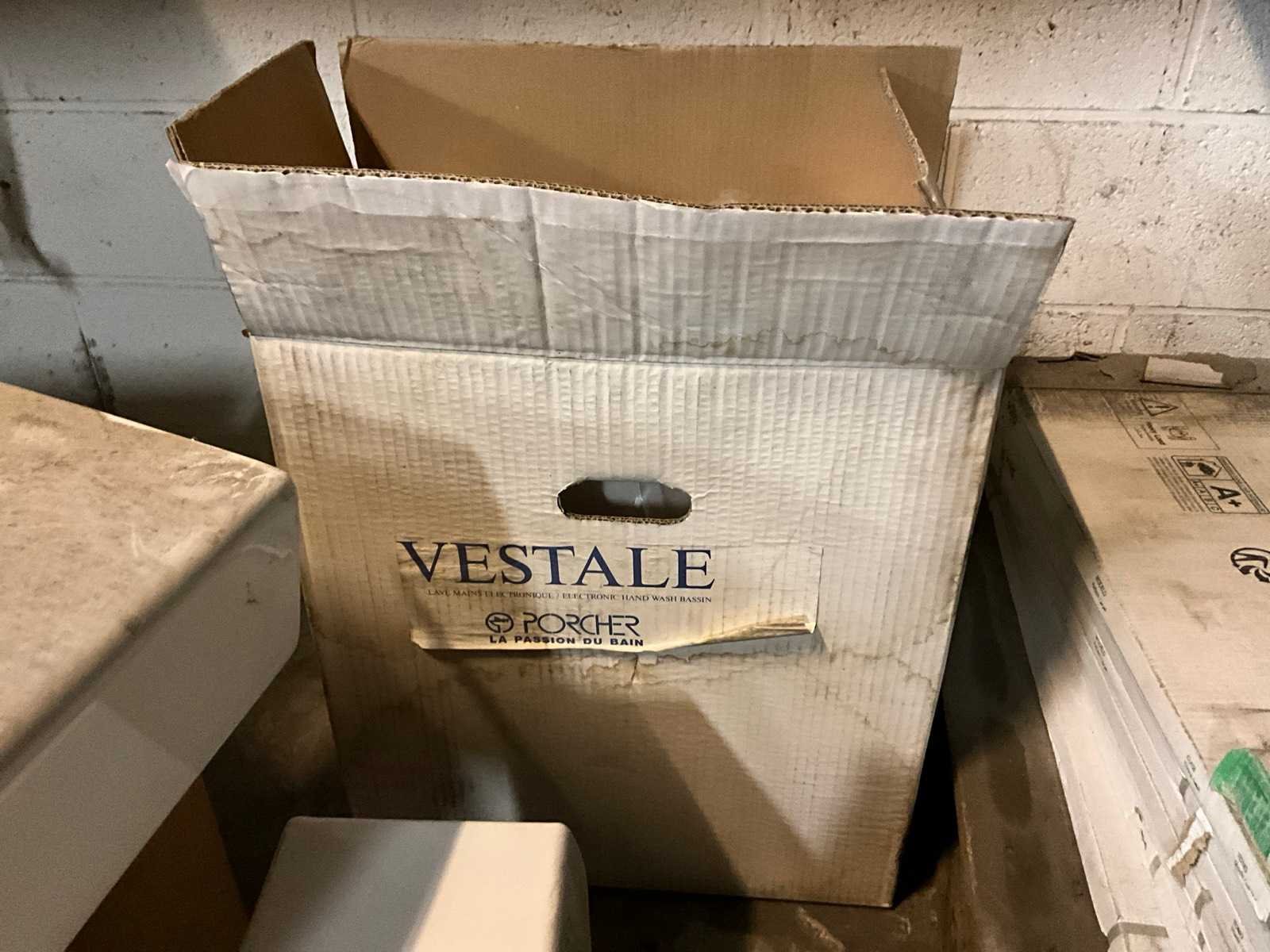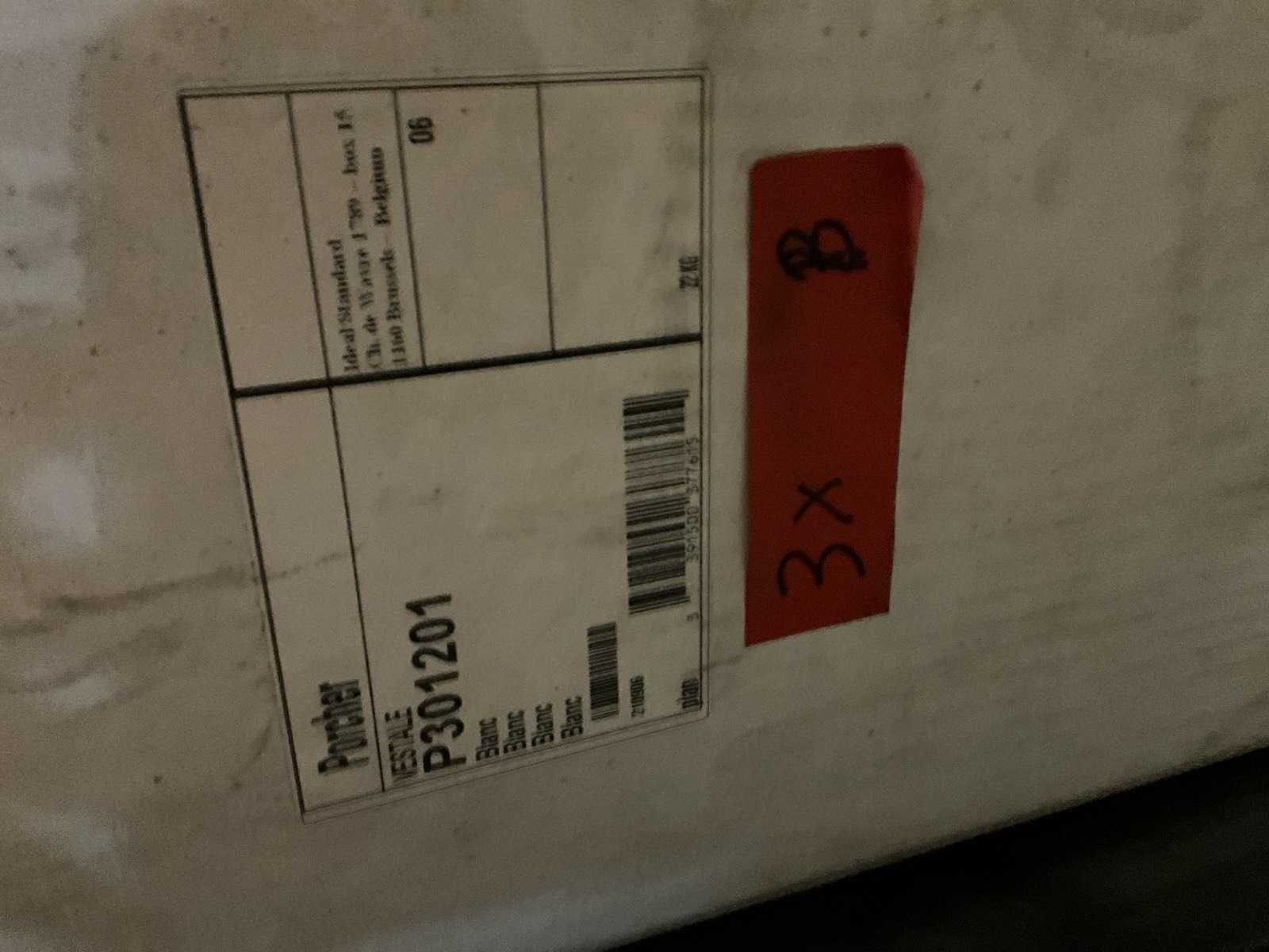 Waaronder 16x tegel Villa 60x120cm, 4x tegel MT 60x60cm, 3x Vestale Electronic hand wash basin en diversen
