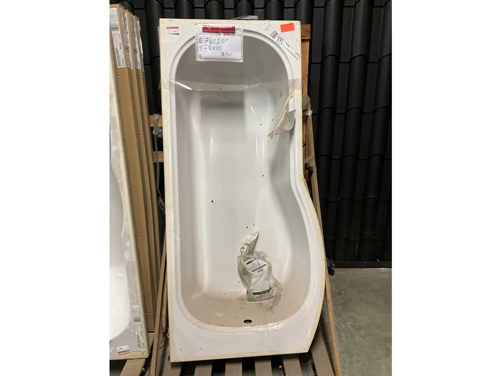 Waaronder 1 toonzaalmodel met lichte schade Merk: Ideal Standard Model: Alto SHR Lengte: 80cm Breedte: 170cm Materiaal: Kunststof