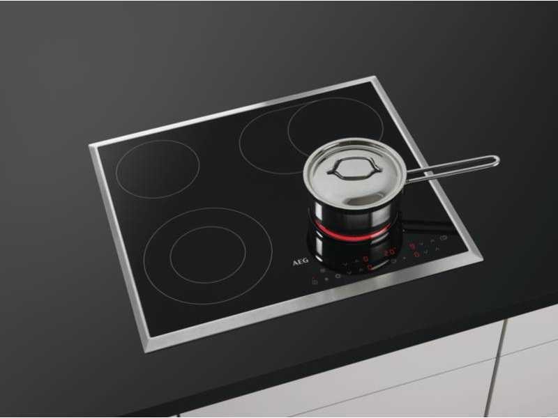 Kookplaat,keramisch,60 cm,Inox rand,4 zones (toonzaalmodel)(catalogusprijs 649 euro) Merk: Aeg Model: HK634060XB