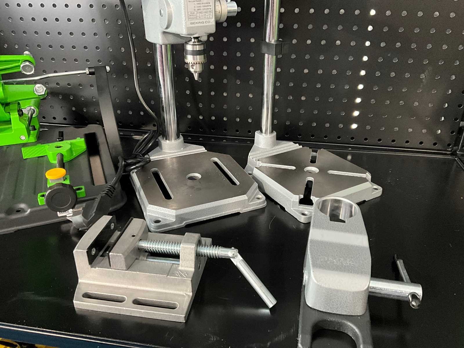 Precisie Kolomboormachine met extra hulpstukken, voor precisie metaal-en hout bewerking en modelbouw. Van zelfde fabrikant als proxxon. Nieuw maar zonder verpakking Bouwjaar: 2026 Boorcapaciteit: 4mm Aantal snelheden: 3 Spindelsnelheid van n =: 1800rpm Spindelsnelheid tot n =: 12000rpm Boordiepte: 25mm Tafel afmeting l: 170mm Tafel afmeting b: 170mm Motorvermogen (kW): 0.34kW Aansluiting: 220V Machinegewicht: 20kg Afmeting l: 303mm Afmeting b: 243mm Afmeting h: 215mm