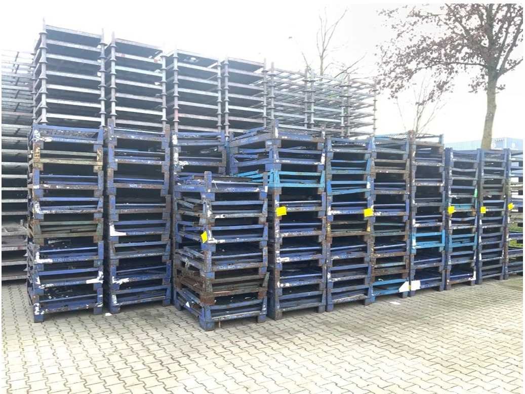 GitterBox opklapbaar - Palletdoos - Stalen palletdozen 1230*830*970mm gebruikte staat maar in zeer goede toestand Lot bestaat uit 2stuks Type: gitterbox Afmeting l: 1200mm Afmeting b: 800mm Afmeting h: 970mm Eigen gewicht: 80kg