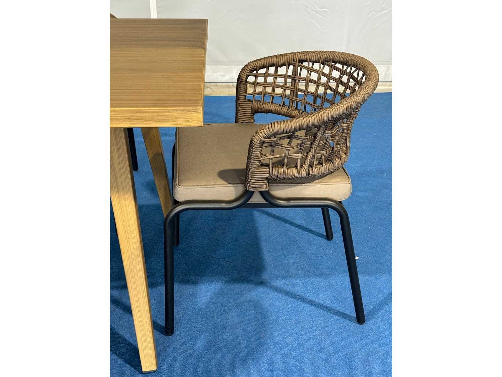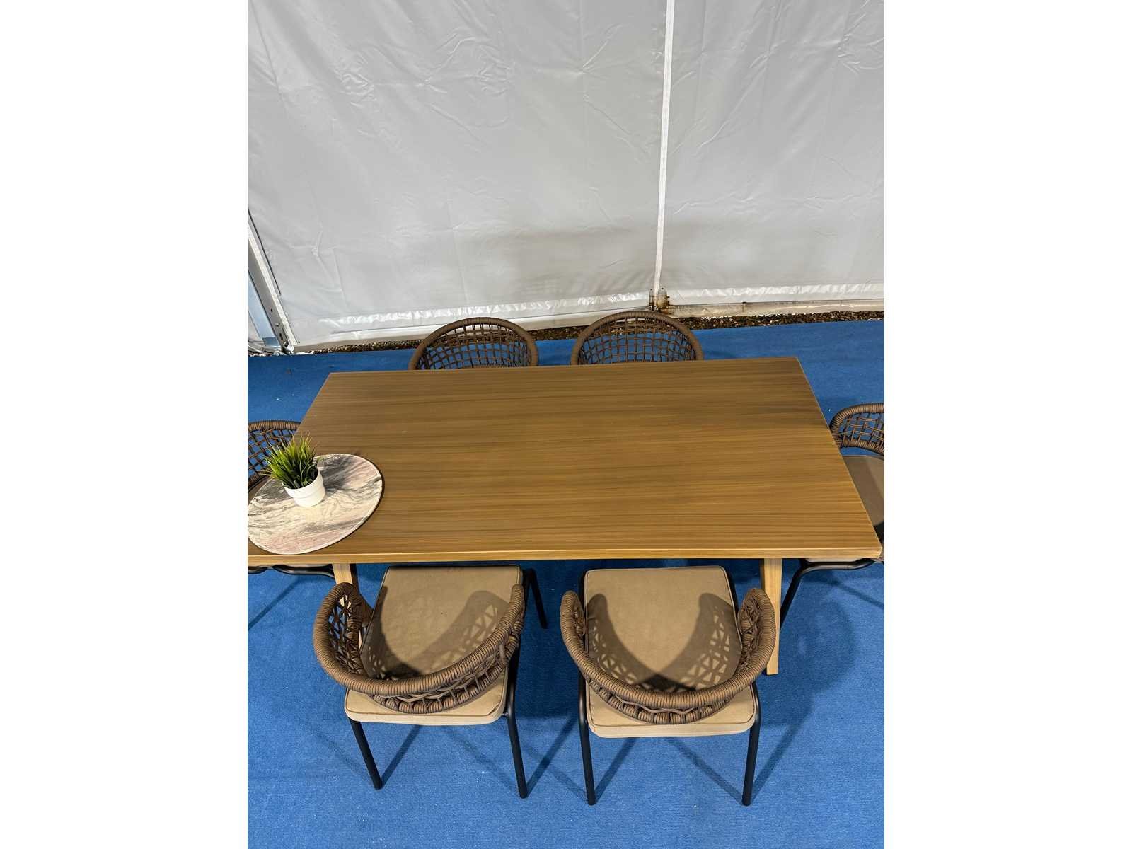 Nieuwe De MaxxGarden Estrella Luxe outdoor-collectie is tegelijkertijd warm en uitnodigend, stijlvol en intrigerend. Het ontwerp bestaat uit ronde vormen, strakke poten en een elegante zitschaal in gepoedercoat aluminium, bekleed met extra geweven buitentouw. Het materiaal is weerbestendig maar voelt ook verrassend zacht aanvoelt. De houtlook tafels combineren bijzonder goed met de warme stoffering; Onze stijlvolle aluminium tuinmeubelset wordt het middelpunt van je tuin of terras ! Deze eethoek voor 6 personen heeft een elegant ontwerp en is een geweldige keuze voor dineren in de buitenlucht en ontspannen in de tuin. Het gepoedercoate stalen frame maakt de stoelen sterk en stevig, en dankzij de lichtgewicht constructie zijn alle onderdelen eenvoudig te verplaatsen. Dankzij het weer- en waterbestendige stof is de tuinstoelenset eenvoudig schoon te maken. De dikke, zachte zitkussens en kussens met verticale katoenvezels zijn uiterst comfortabel.. De levering bevat 1 tafel met 6 fauteuils, 6 zitkussens. Opmerking: wij raden aan de set af te dekken wanneer het regent, sneeuwt of vriest. Kleur bruin: zwart Kleur kussen: grijs Materiaal: gepoedercoat aluminium frame Materiaal kussenhoes: 100% polyester Dikte kussen: 5 cm Afmetingen stoel: 54x59x77 cm (B x D x H) Breedte zitting: 59 cm Diepte zitting: 54 cm Zithoogte vanaf de grond: 42 cm Afmetingen tafel: 180x90x72 cm (L x B x H) Levering bevat: 1 x tafel 6 x armstoel 6 x zitkussen Merk: MaxxGarden Model: estrella Product type: tuinset Kussens: true Vorm: rechthoek Stoelen: 6 Kleur: bruin Lengte: 180cm Breedte: 90cm Hoogte: 72cm Materiaal: aluminium Diepte: 54 Zithoogte: 42