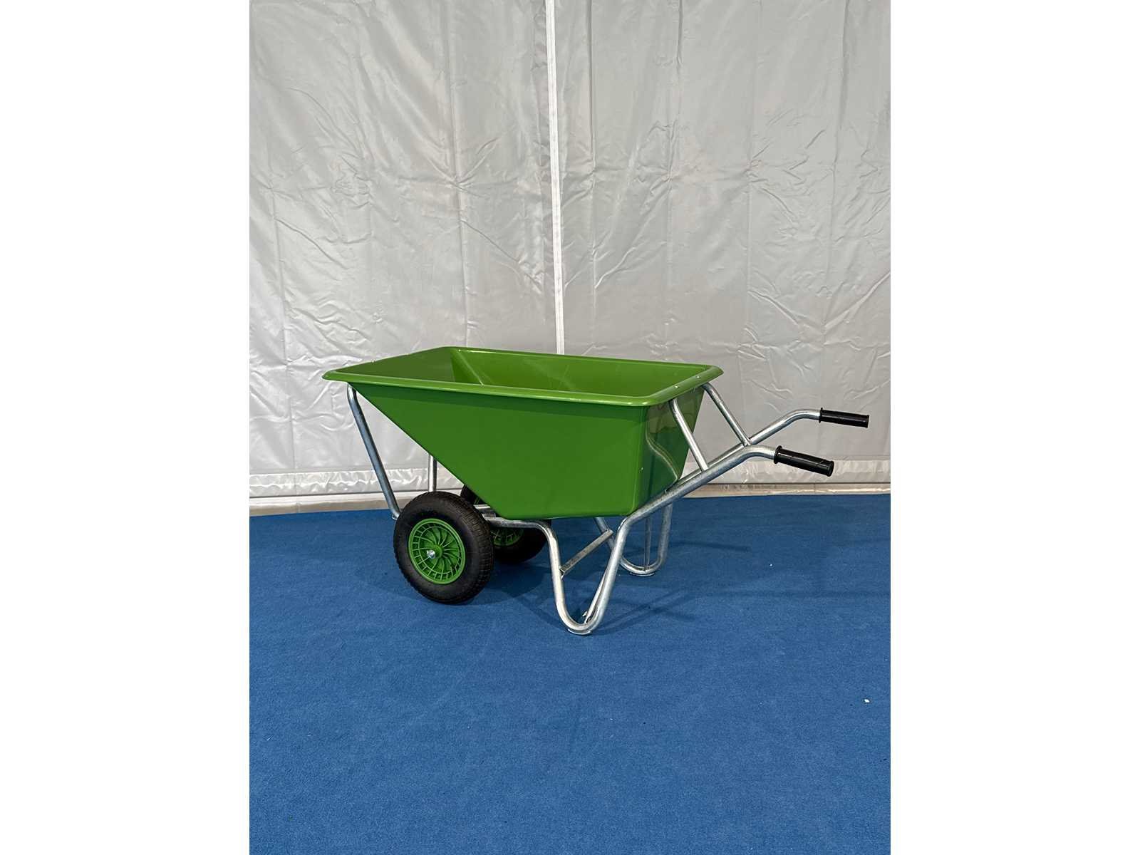 Nieuwe kruiwagen 160 Liter dubbel wiel Product type: kruiwagen Kleur: groen Materiaal: kunststof
