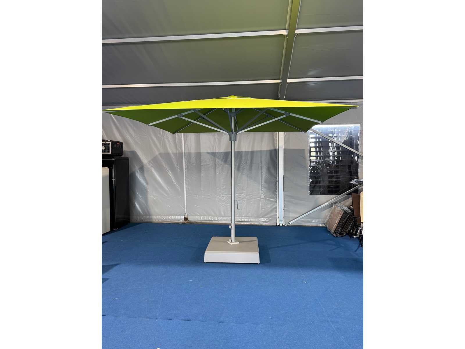 Luxe zweefparasol - voet en verlichting lader voor verlichting ontbreekt Voet 90X90X20cm Merk: MaxxGarden Product type: zweefparasol Vorm: vierkant Parasolvoet: true Verstelbaar: true Kleur: groen Lengte: 300cm Breedte: 300cm Materiaal: aluminium