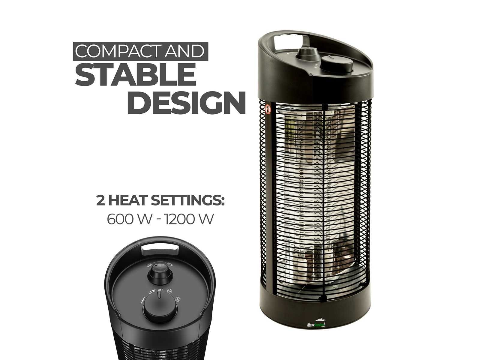 Nieuwe MaxxGarden - 21023 - Terrasverwarming 1200W meerdere standen en automatische zwenkfunctie verpakkingsschade Merk: MaxxGarden Model: 21023 Product type: Terrasverwarming Kleur: zwart Gewicht: 4kg Lengte: 18cm Breedte: 18cm Hoogte: 56cm Materiaal: kunststof