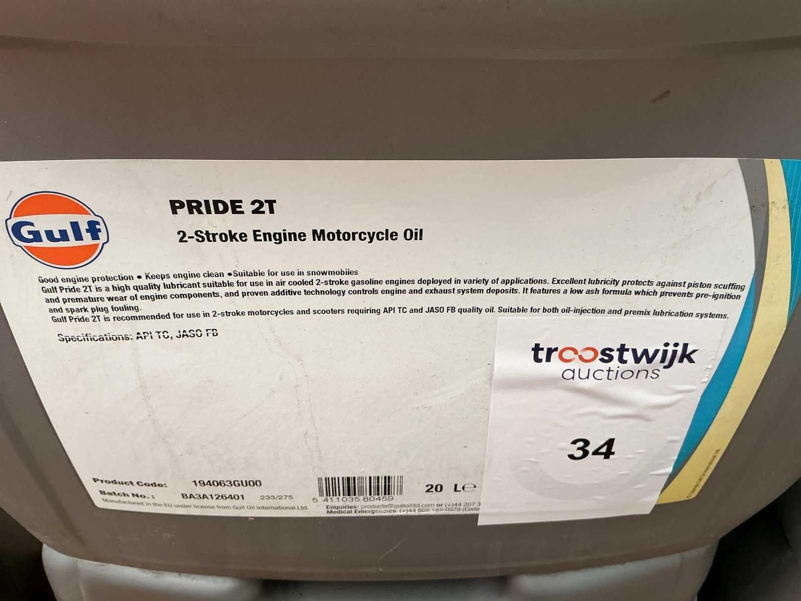 Gulf,inhoud 20 liter 2- stoke motorolie (2x)