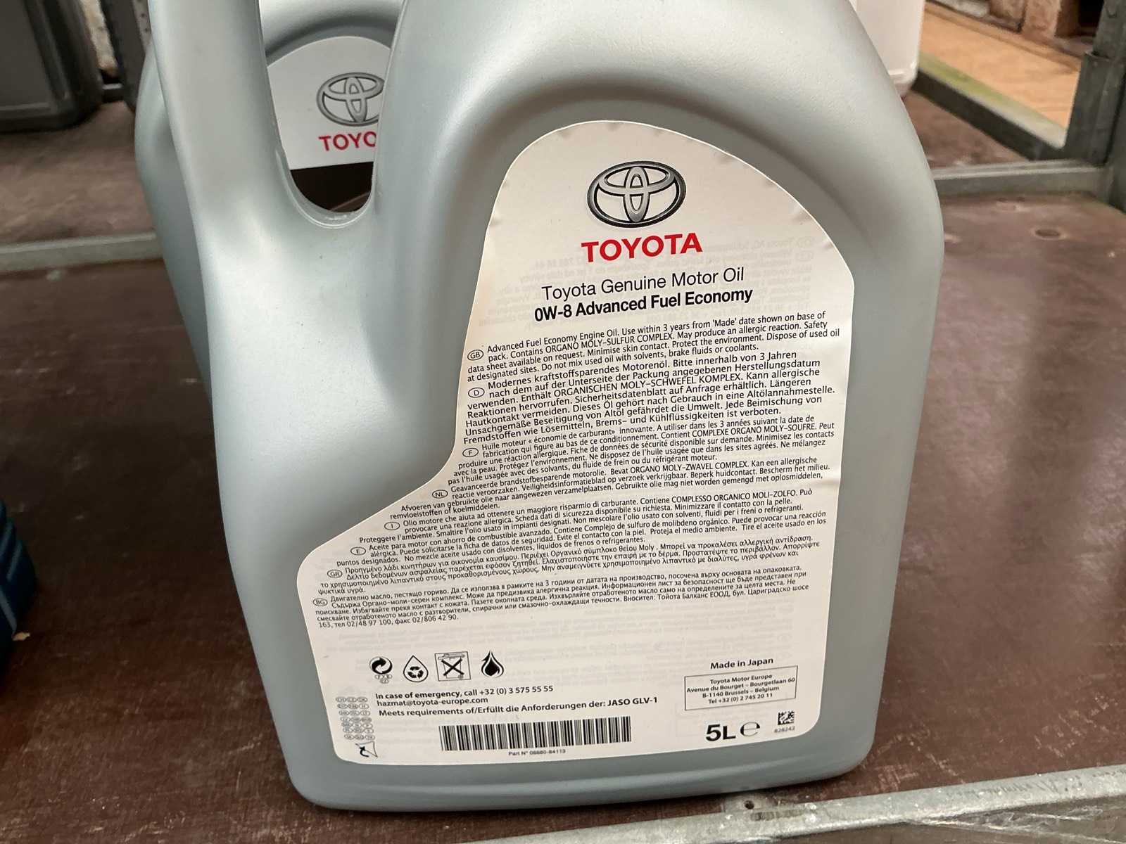 Toyota,inhoud 5 liter 0w8 motor olie (2x)