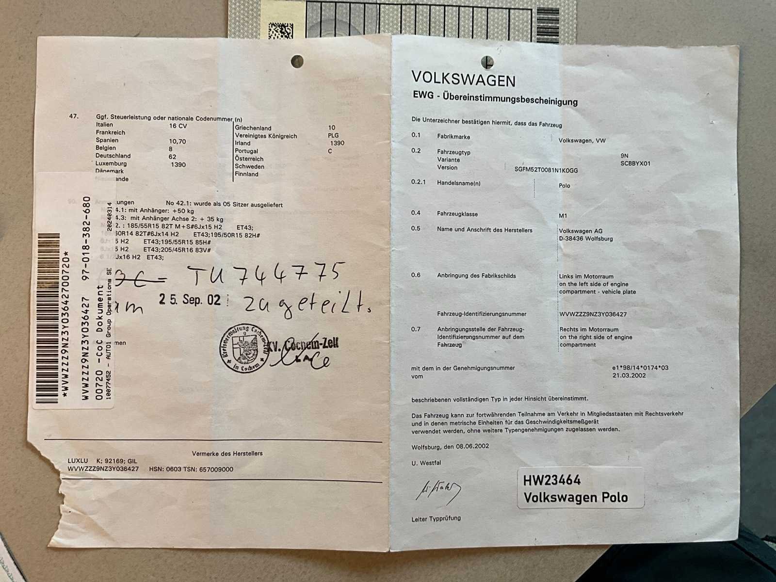 Merk: Volkswagen Model: Polo Bouwjaar: 2002 Afgelezen kilometerstand: 137321km Cilinderinhoud: 1390cc Vermogen (kW): 55kW Brandstof: benzine Datum eerste toelating: 27/9/2002 APK vervaldatum: 10/9/2026 Transmissie: Handgeschakeld Aantal sleutels: 2 CVO verklaring: true Start en rijdt: Ja Vavato voert geen technische keuring uit.: true Inschrijvingsbewijs - deel 1 : Aanwezig Inschrijvingsbewijs - deel 2: Niet aanwezig