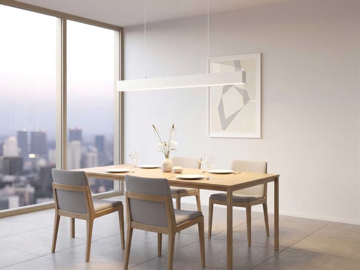 Lichtstroom 4200 lumen, lichtkleur schakelbaar tussen warm wit 3000K neutraal wit 4000K daglicht 6500K, geschikt voor binnen, afdichting IP20, product kleur wit, afm. 1200 x 75 x 50 mm, materiaal aluminium en PC, stralingshoek 120°, door de meegeleverde ijzerdraden is de lamp in hoogte verstelbaar, levensduur 70.000 uren, voltage 170-265V (50/60Hz), HRZ201 Merk: HOROZ Product type: Hanglamp Wattage: 40W Lichtbron: LED Kleur: Wit Kleurtemperatuur: 3000K 4000K 6000K Lengte: 120cm Breedte: 5.0cm Hoogte: 7.5cm Materiaal: aluminium en PC