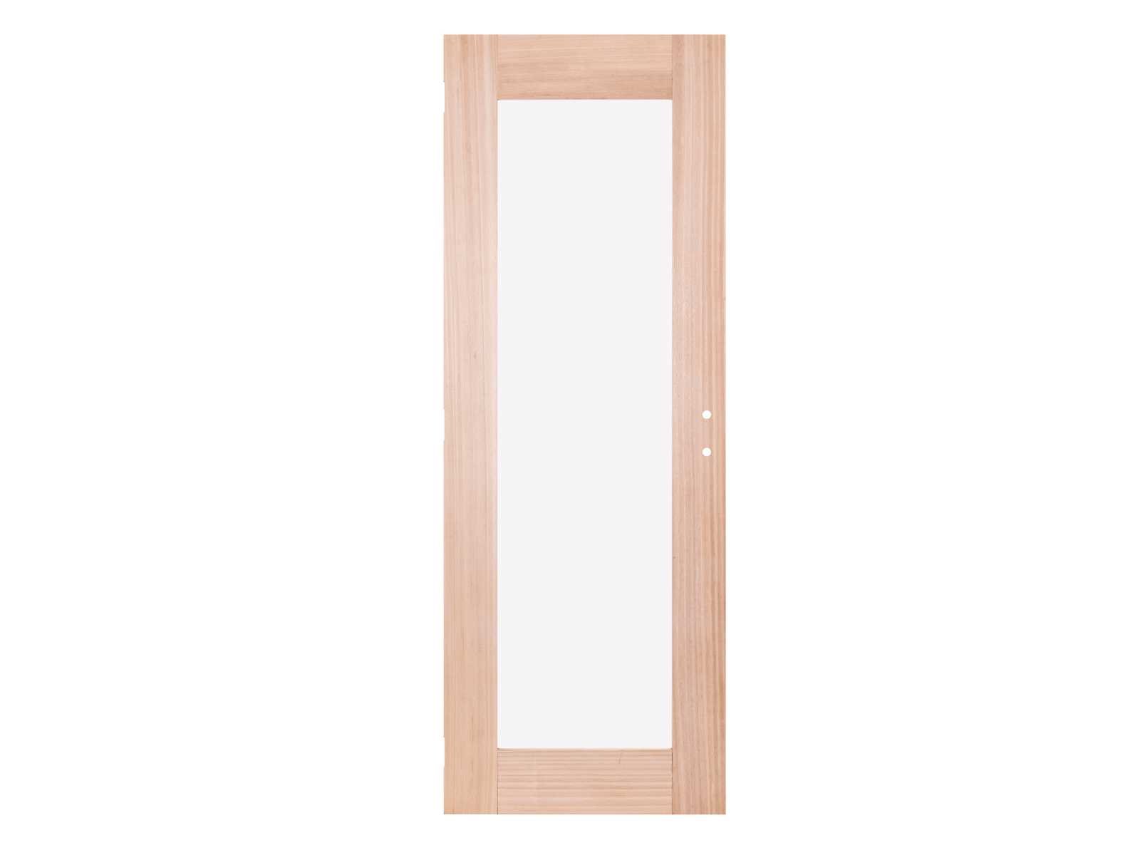 1 binnendeur, zonder kozijnset, in massief hout, beglaasd in mat glas. Te combineren met een bestaand kozijn of nieuw kozijn. Deur reeds voorzien van frezingen voor slot en scharnieren. Afmetingen deurblad: 40mm(D) x 780mm(B) x 2015mm(H)