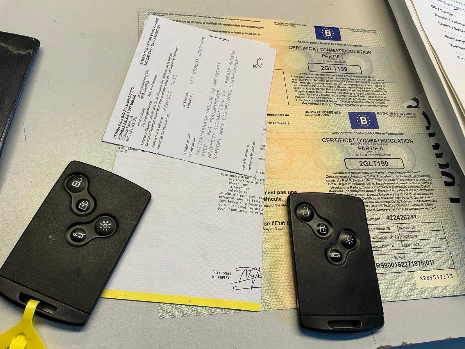 <Br> - deuk, spatbord beschadigd, krassen. Merk: Renault Type: Clio Afgelezen kilometerstand: 29734km Cilinderinhoud: 898cc Vermogen (kW): 56kW Brandstof: benzine Chassisnummer: VF1R9800162271978 Datum eerste toelating: 04/03/2019 Aantal sleutels: 2 Gelijkvormigheidsattest aanwezig: true Inschrijvingsbewijs - deel 1 : Aanwezig Inschrijvingsbewijs - deel 2: Aanwezig