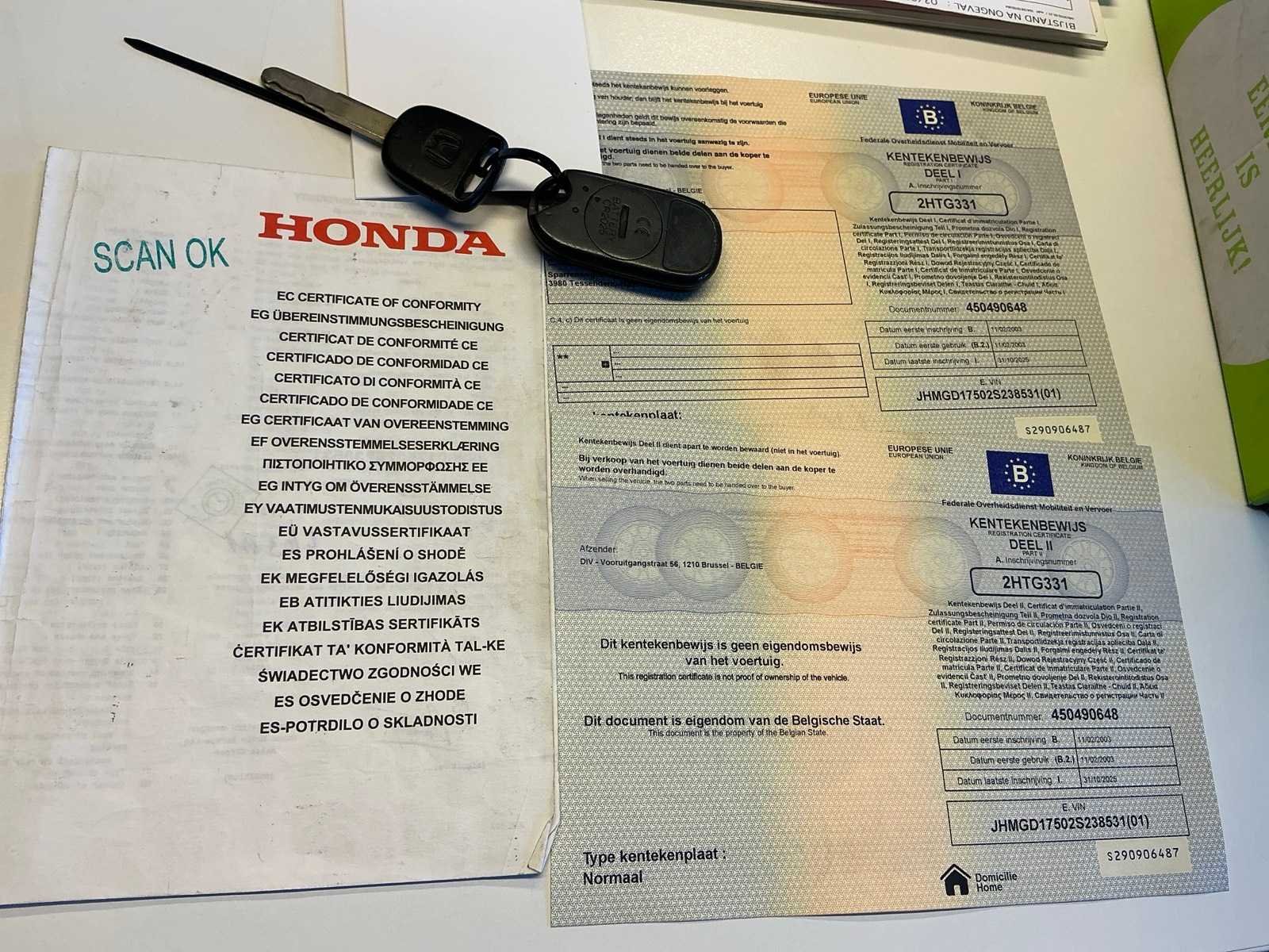 <Br> - Handrem zit vast. - krassen. Merk: Honda Type: Jazz Afgelezen kilometerstand: 199316km Cilinderinhoud: 1339cc Vermogen (kW): 61kW Brandstof: benzine Chassisnummer: JHMGD17502S238531 Datum eerste toelating: 11/02/2003 Transmissie: Handgeschakeld Aantal sleutels: 1 Gelijkvormigheidsattest aanwezig: true Inschrijvingsbewijs - deel 1 : Aanwezig Inschrijvingsbewijs - deel 2: Aanwezig