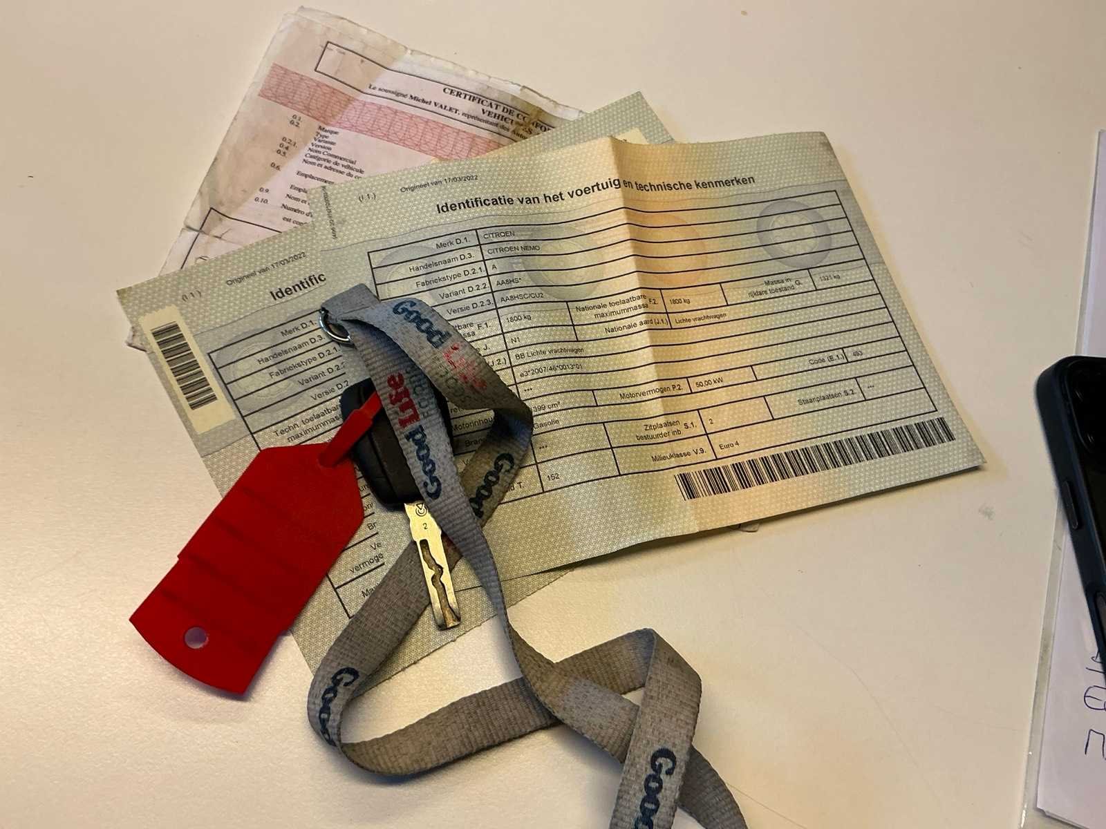 Lichte vrachtwagen Merk: Citroën Model: Nemo Chassisnummer: VF7AA8HSCB8140670 Afgelezen kilometerstand: 318196km Cilinderinhoud: 1399cc Vermogen (kW): 50kW Brandstof: diesel Datum eerste inschrijving: 04/08/2011 Transmissie: handgeschakeld Aantal zitplaatsen: 2 Nationaliteit documenten: B Aantal sleutels: 1 Carrosserie: gebruikssporen, schade rechtsvoor, 1 zijspiegel te herstellen Emissieklasse: Euro 4 Boorddocumenten aanwezig?: true