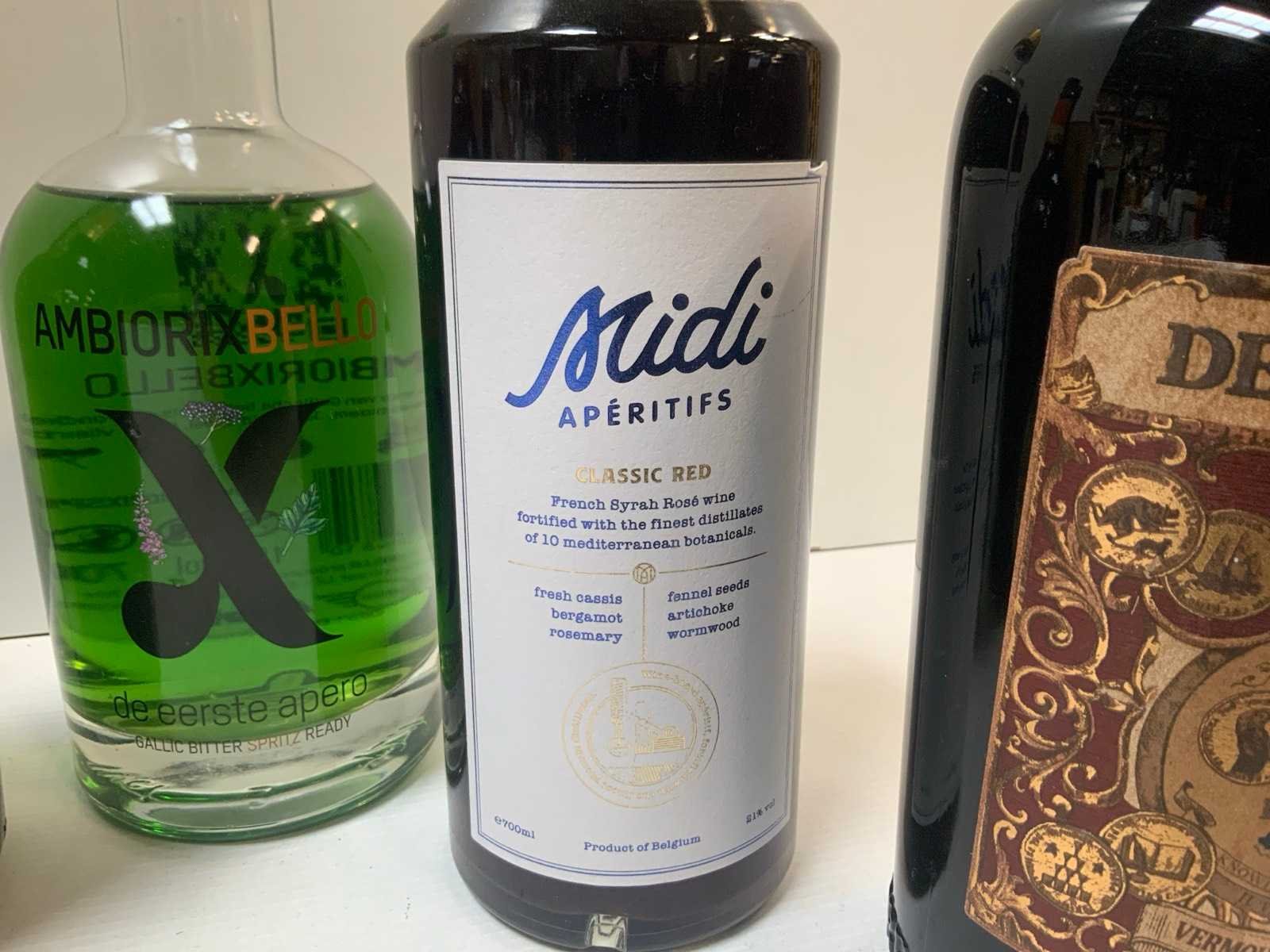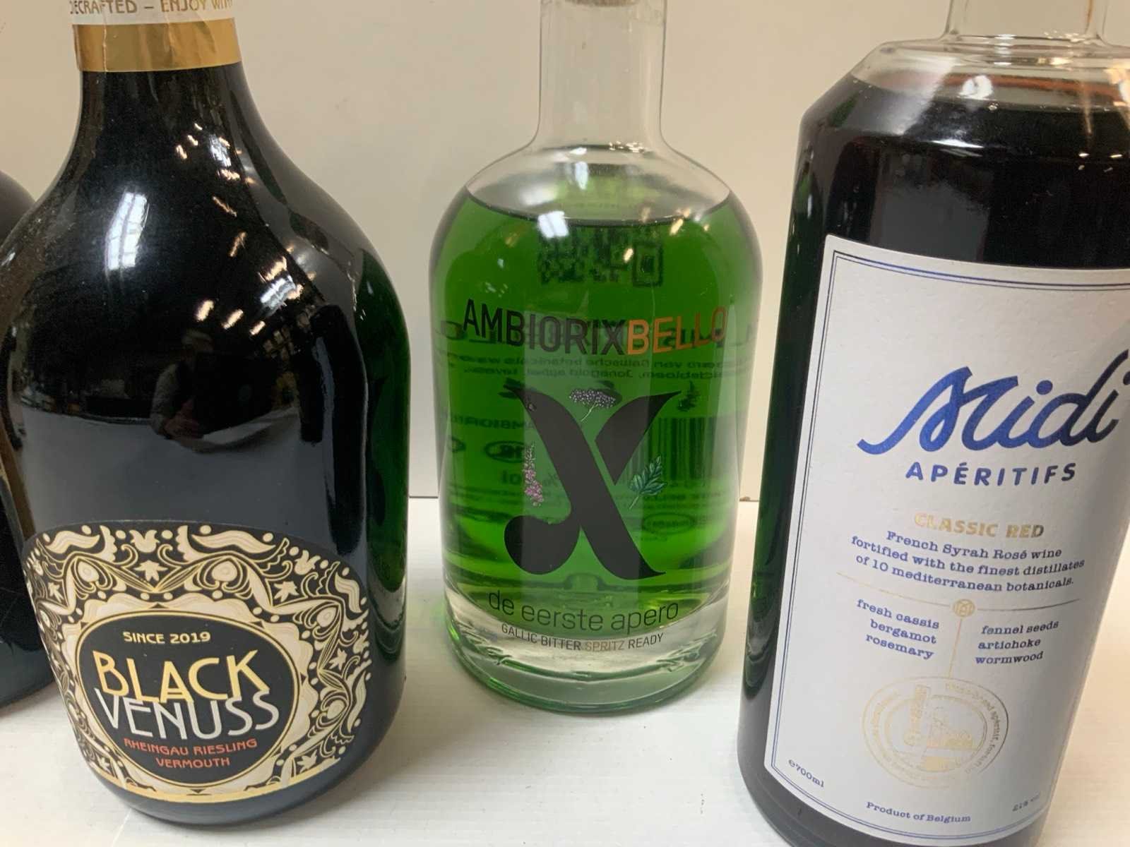 3x 0,75L + 4x 0,70L + 1x 0,50L, zie foto’s voor merken en types