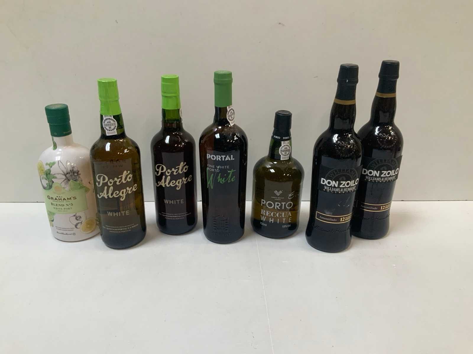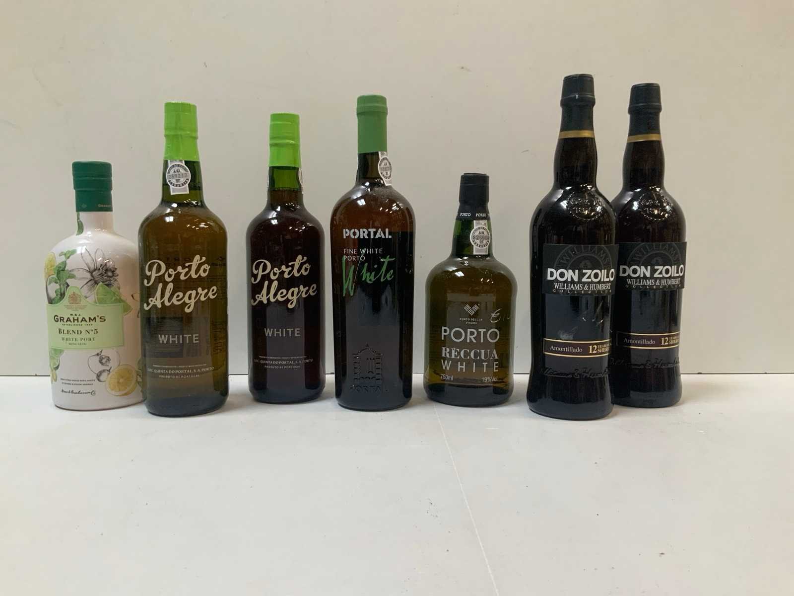 5x witte Porto + 2x Sherry, 0,75L, zie foto’s voor merken en types