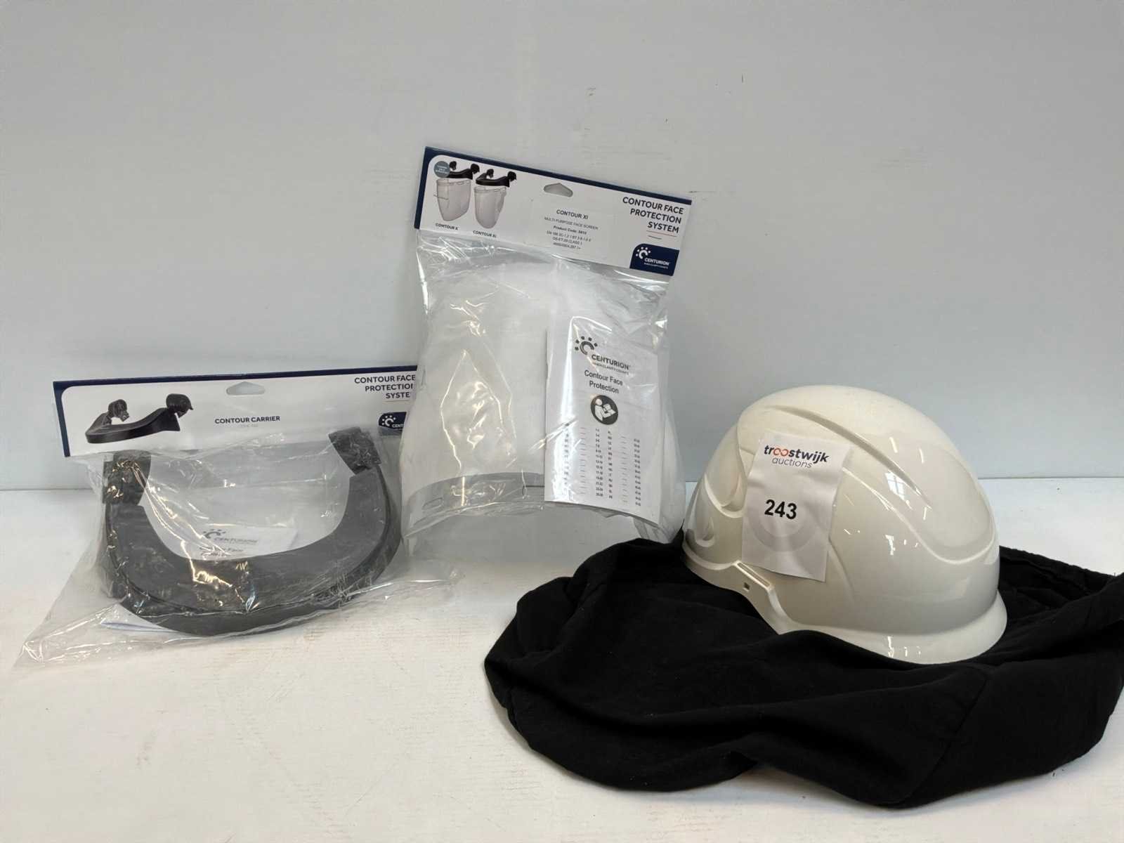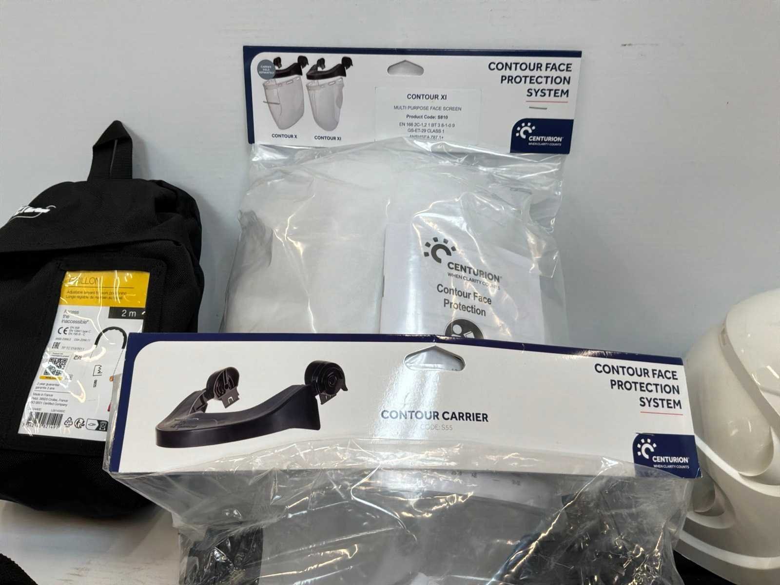 Waaronder onder andere 2x veiligheidshelm met gezichtscherm, 2x valharnas, 1x 3M valstopblok, 1x Tractel blocfor valstopapparaat, 1x leeflijn (2m)