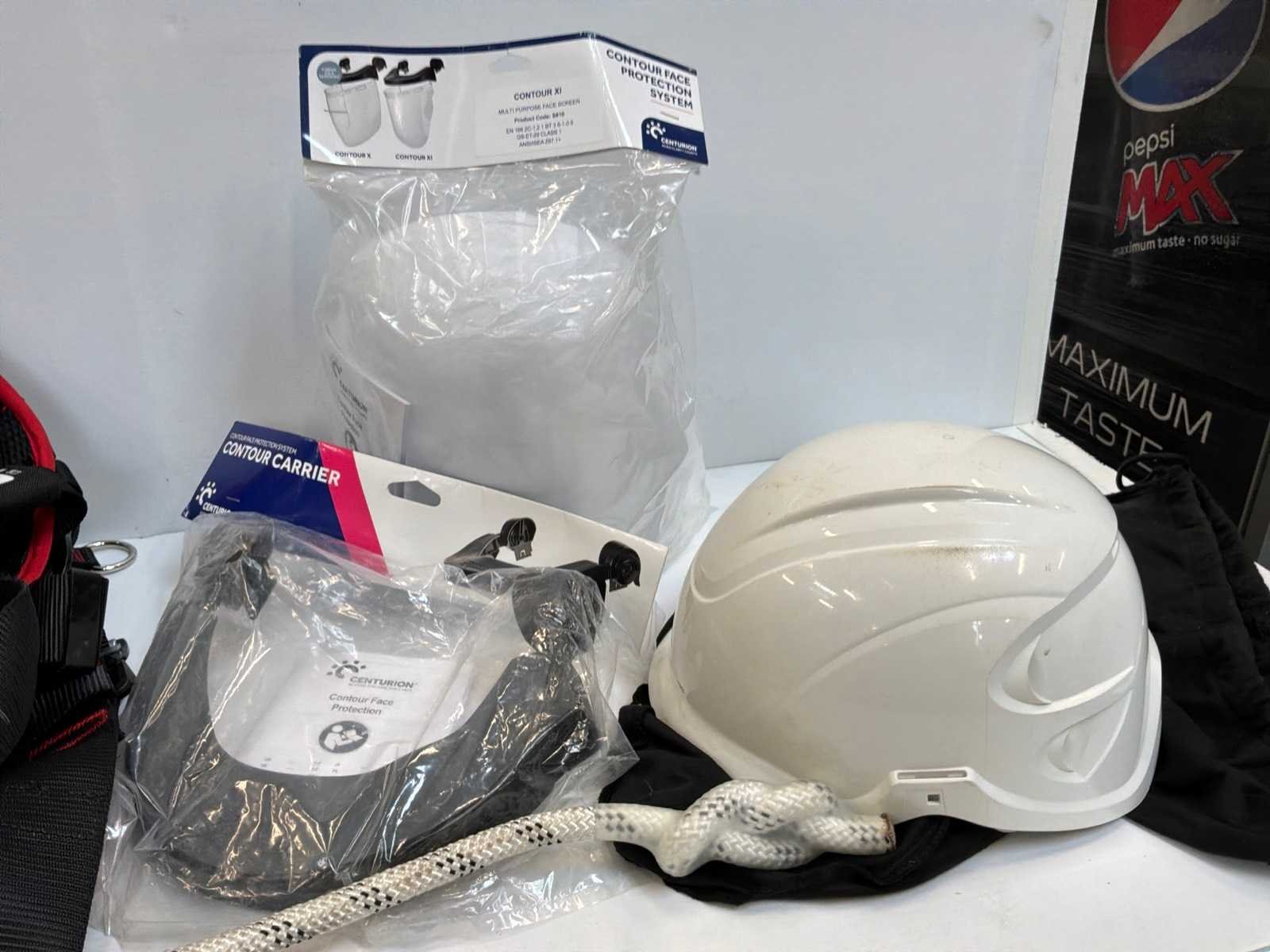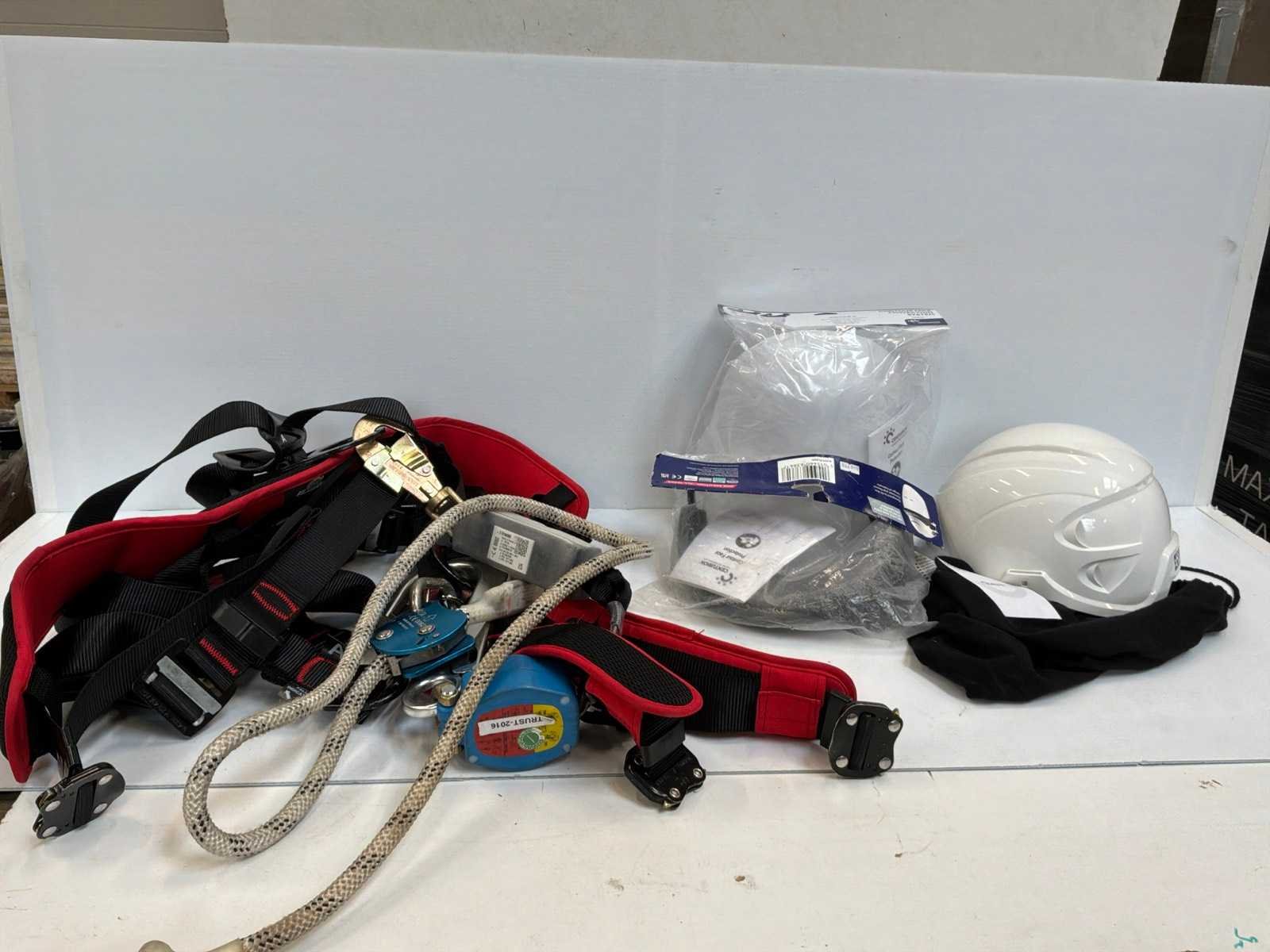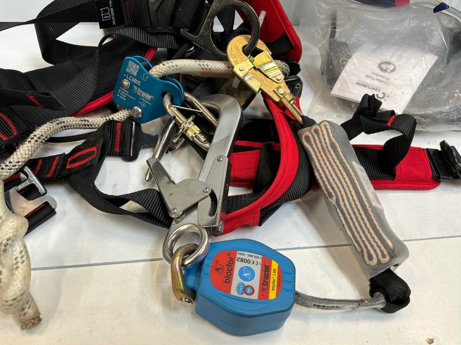 Waaronder onder andere 2x veiligheidshelm met gezichtscherm, 2x valharnas, 2x Tractel blocfor valstopapparaat, 2x leeflijn